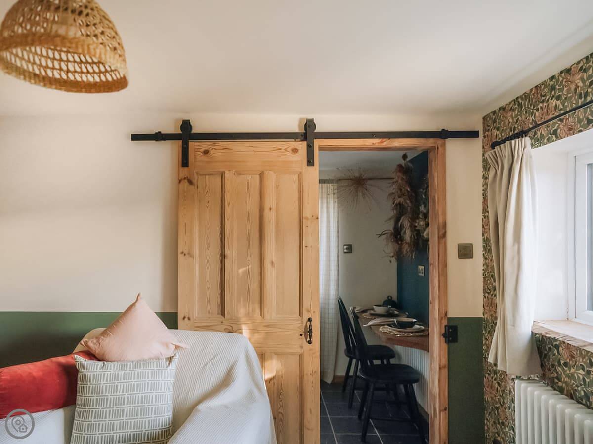 The Green One On The End is the last cottage in a row of three, on the edge of Thurton. It's green, as you'd expect. It's a one-bedroom place for two people.