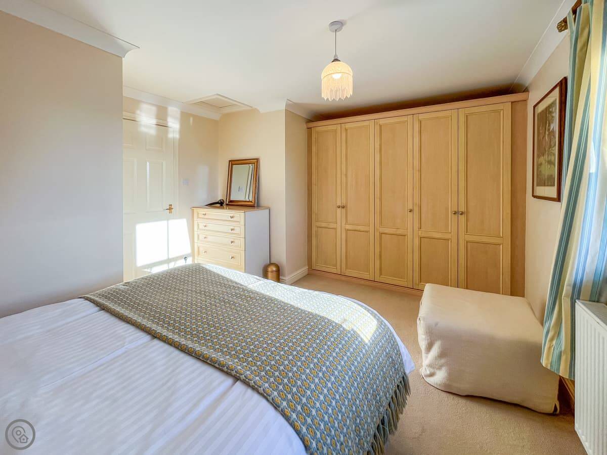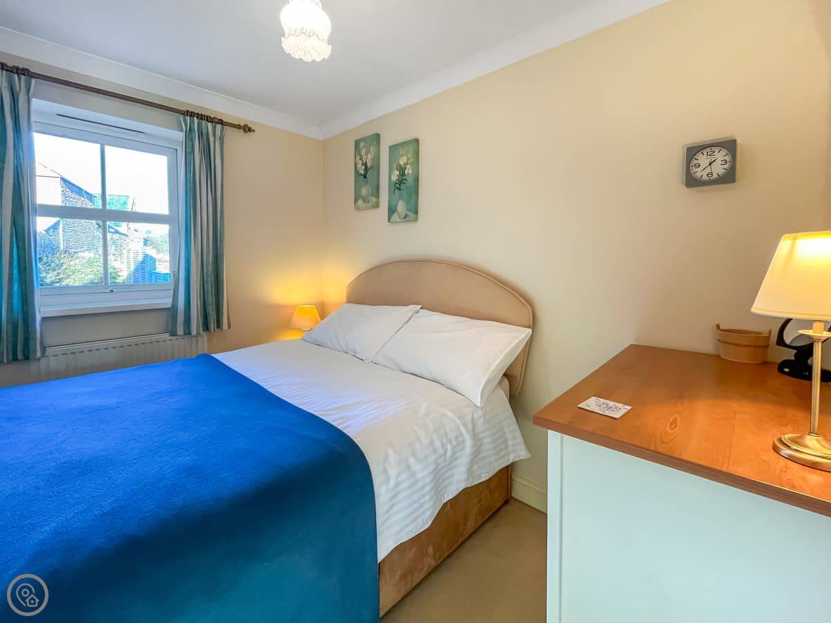 It sleeps four people in three bedrooms. There are two double rooms and one bunk room. One bathroom. It's got a 4 Star rating. It's comfortable and well-equipped. The living room has a wood-burning stove. The stairs are a typical cottage staircase, so they're a bit tight and steep.