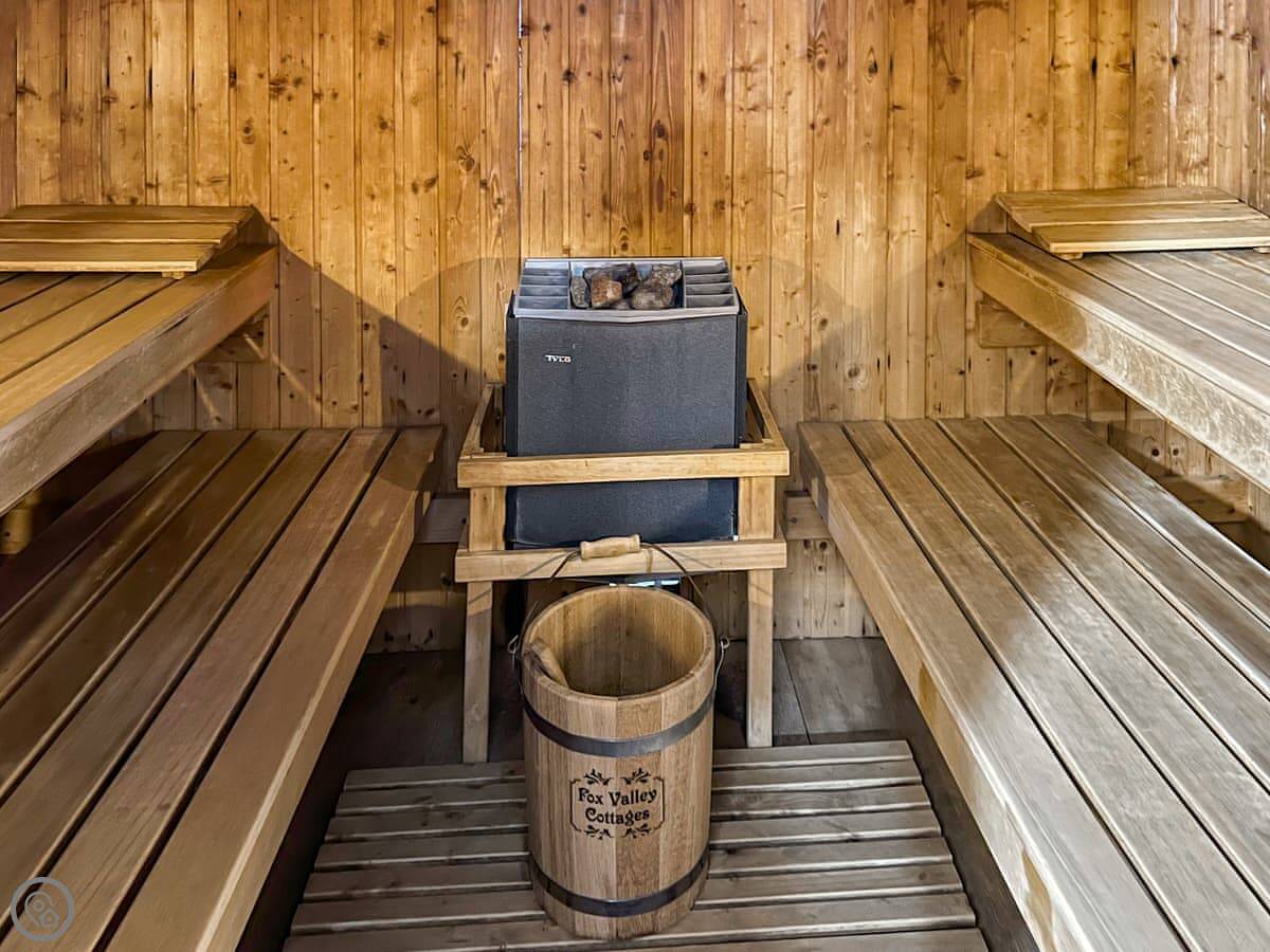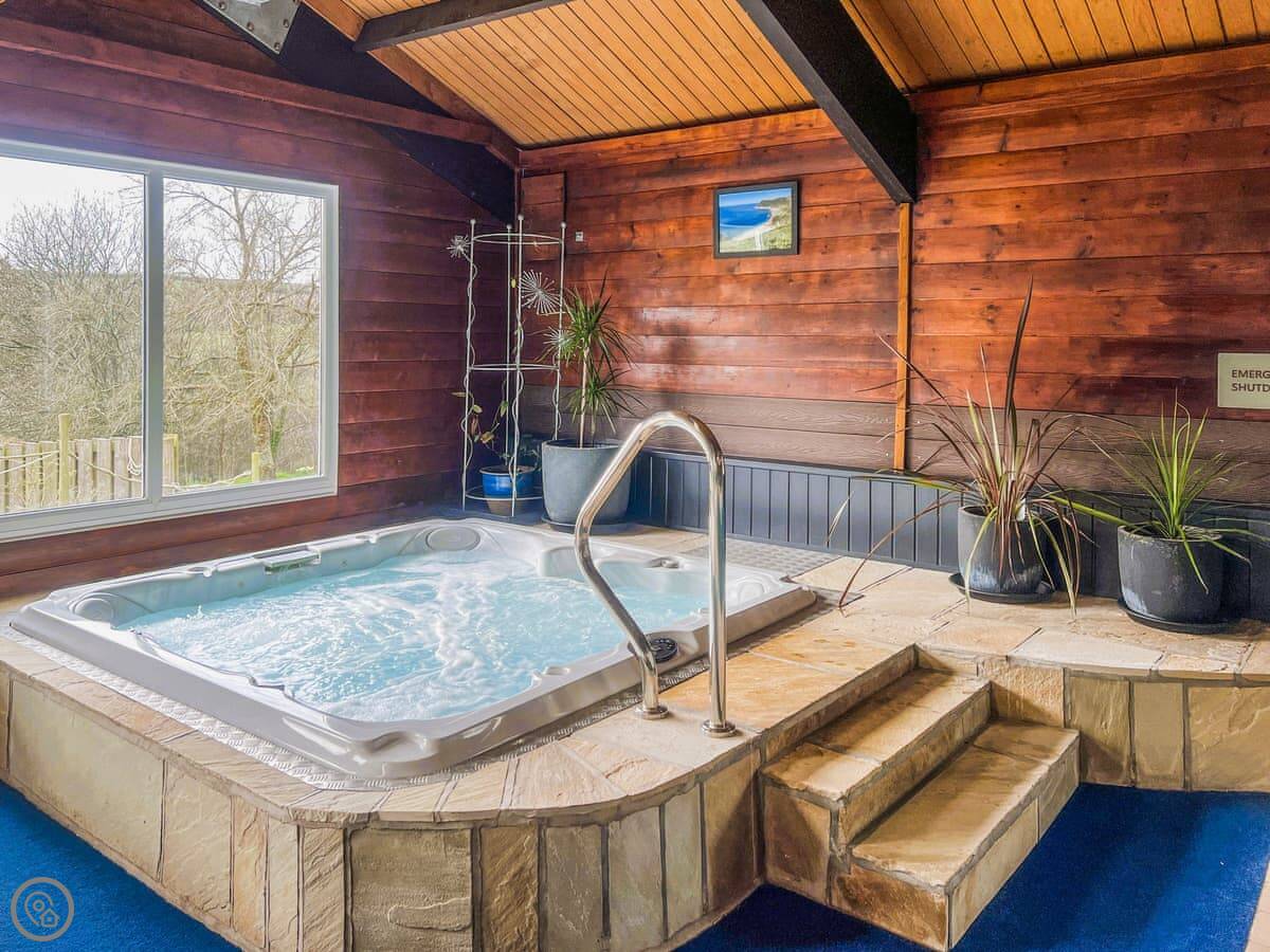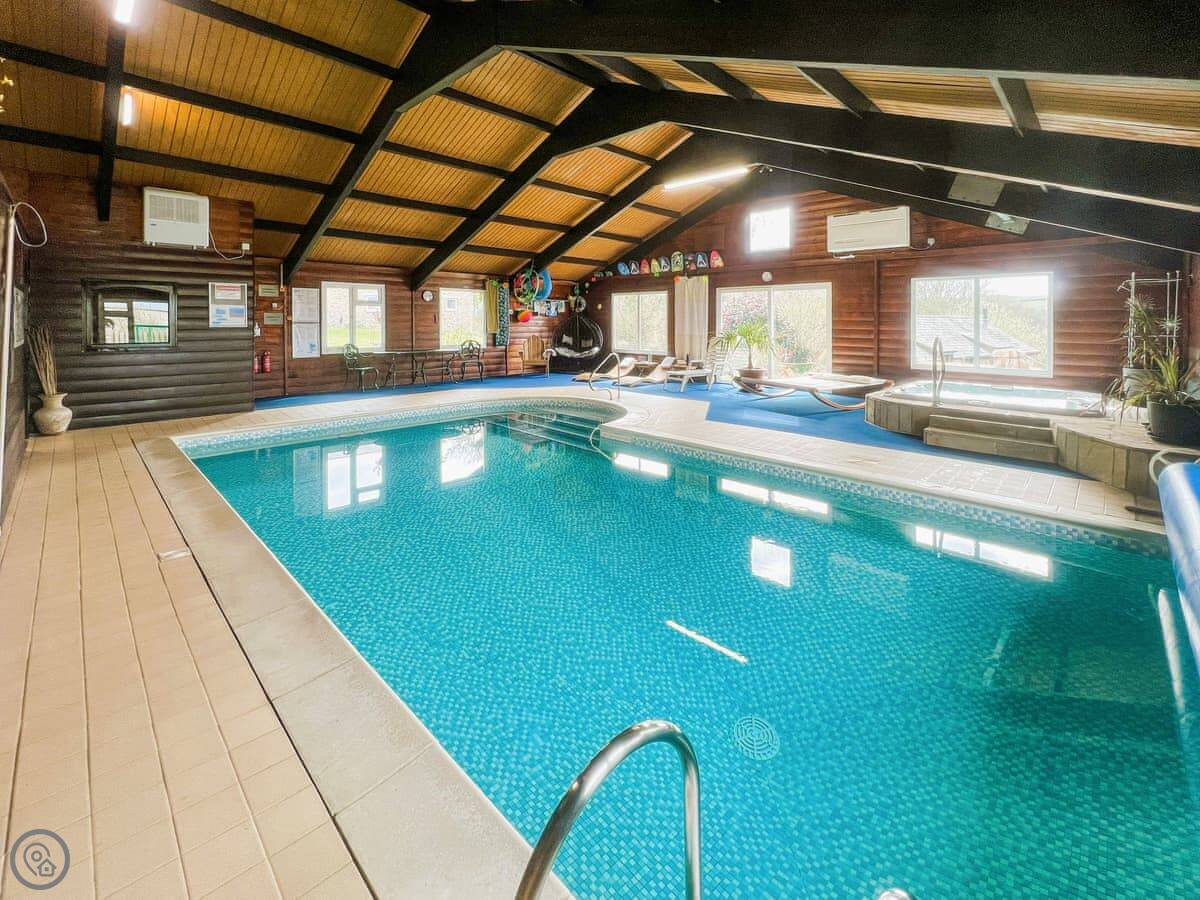 The cottage is part of a small site. That's where the shared facilities are: the indoor heated pool, the hot tub, the sauna, and a games room. They're there if you want them. There's also a washing machine and a dog wash.