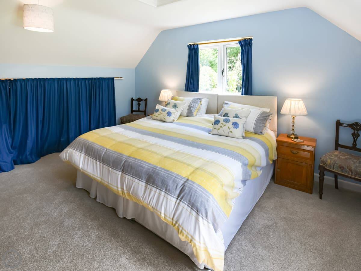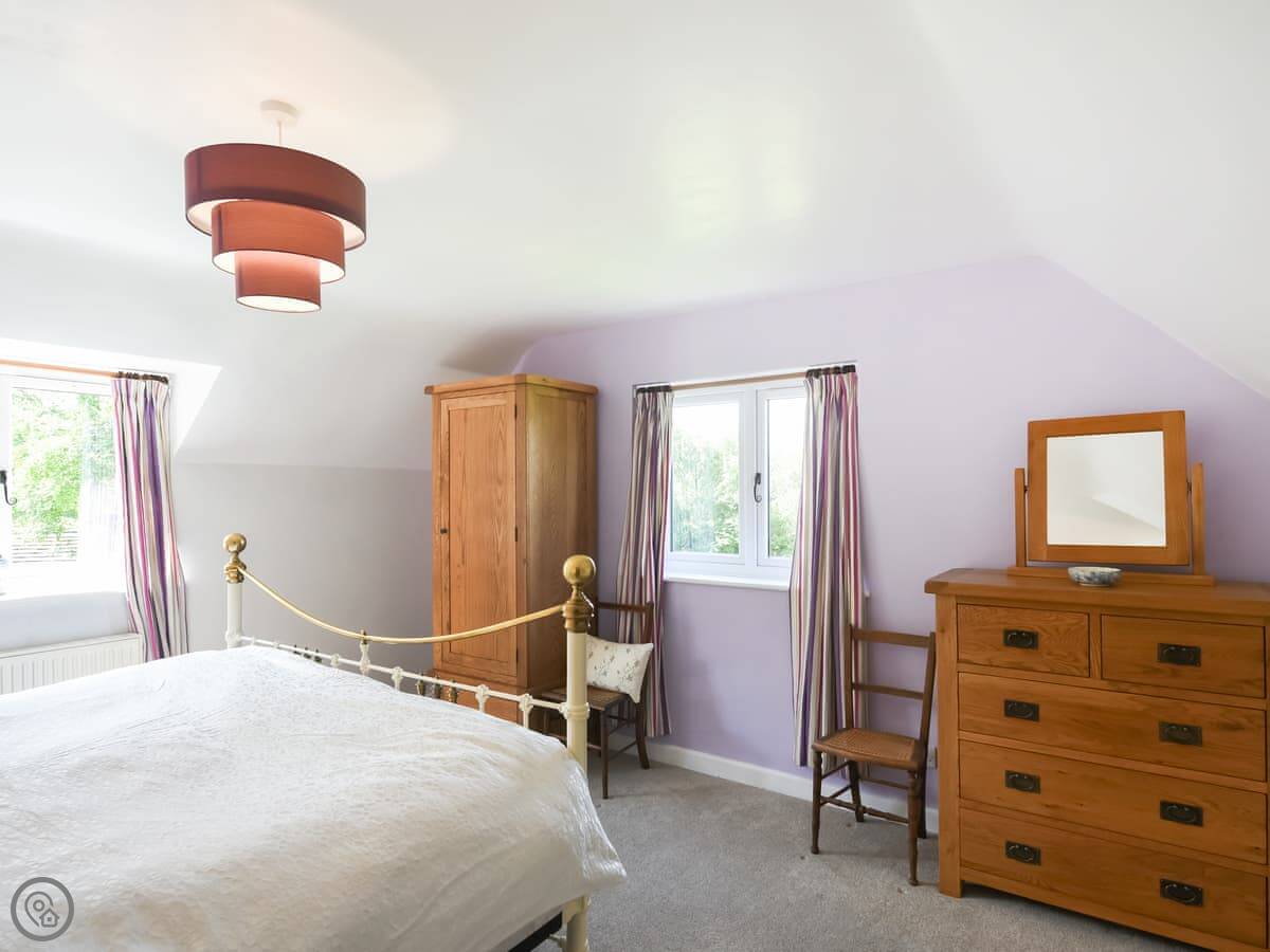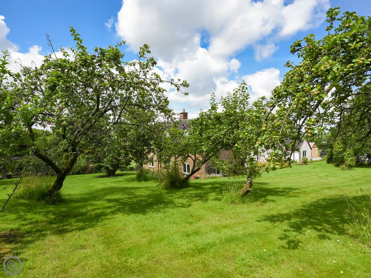 The Lodge is on our farm, just outside Farden. It's a two bedroom place, sleeps four. It's a new build, so you won't get any wonky cottage floors. The back of it looks west over our fields, the front has a view of the little orchard.
