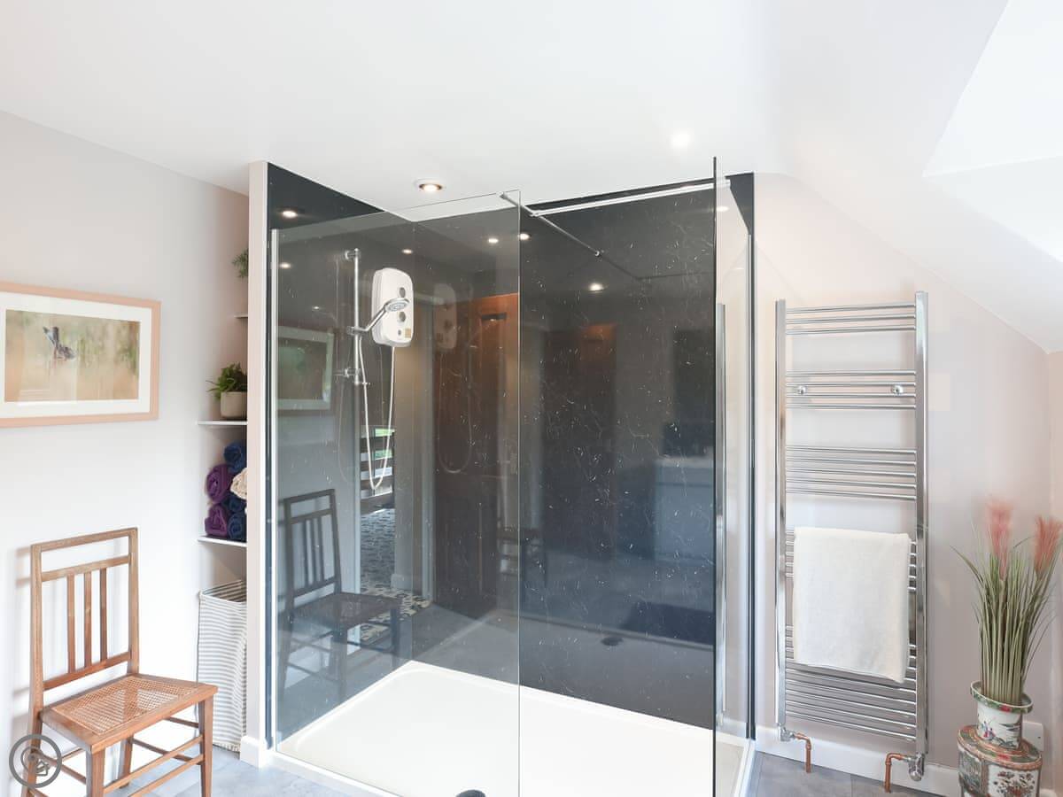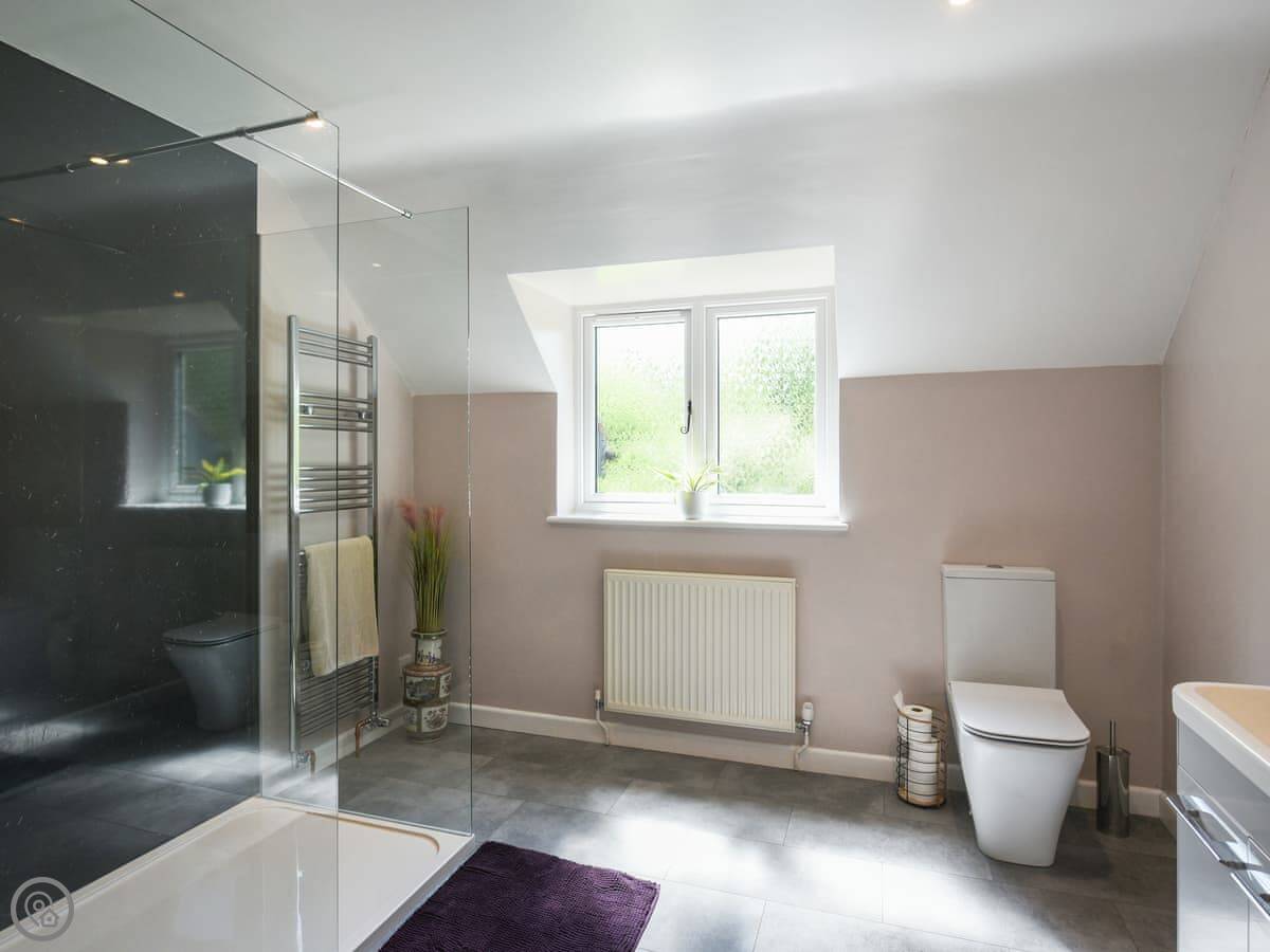 Upstairs are two bedrooms, both with super king beds. One of them splits into two singles if you need it. There's one bathroom with a decent shower. We provide all the bedding and towels.