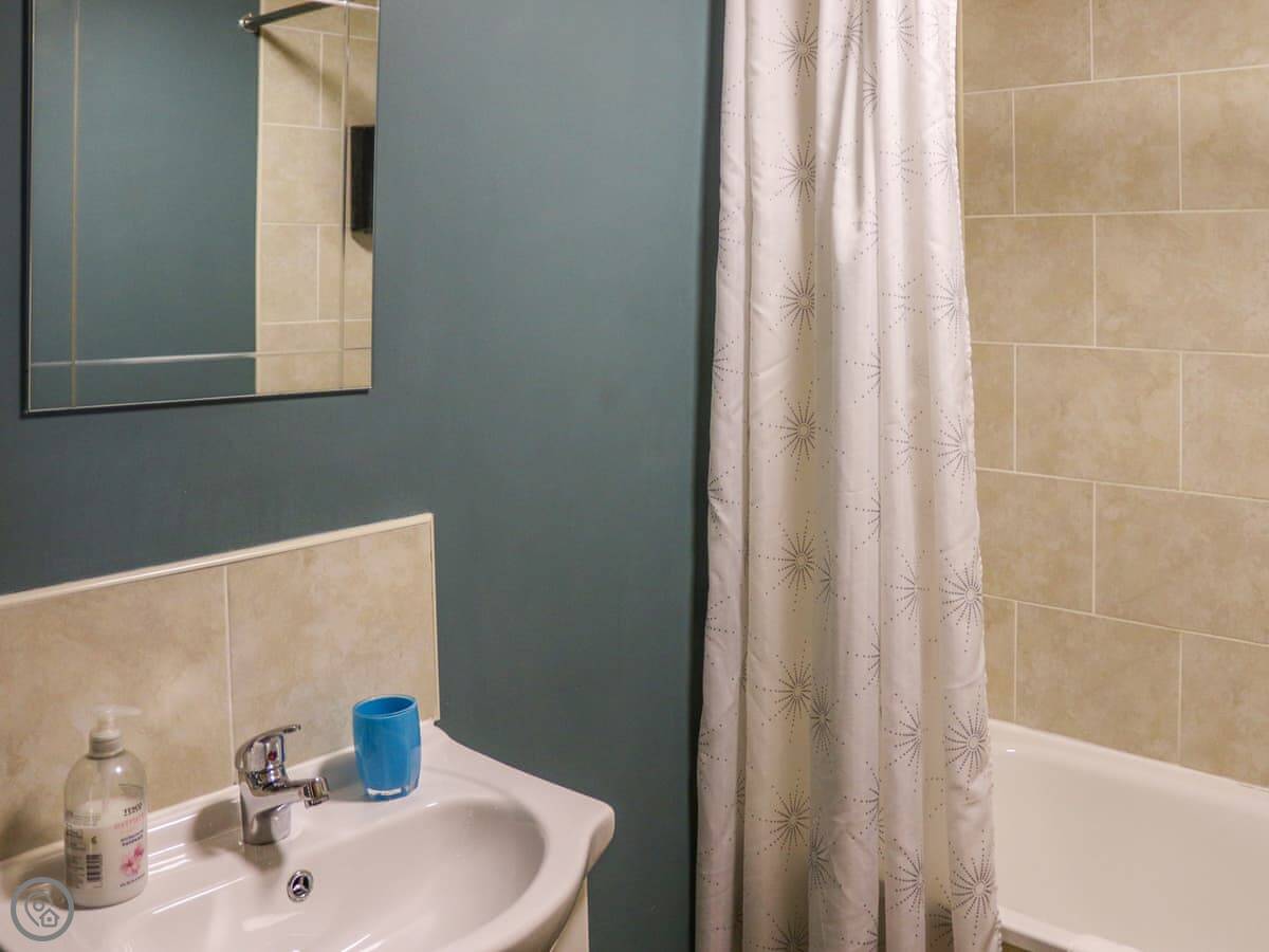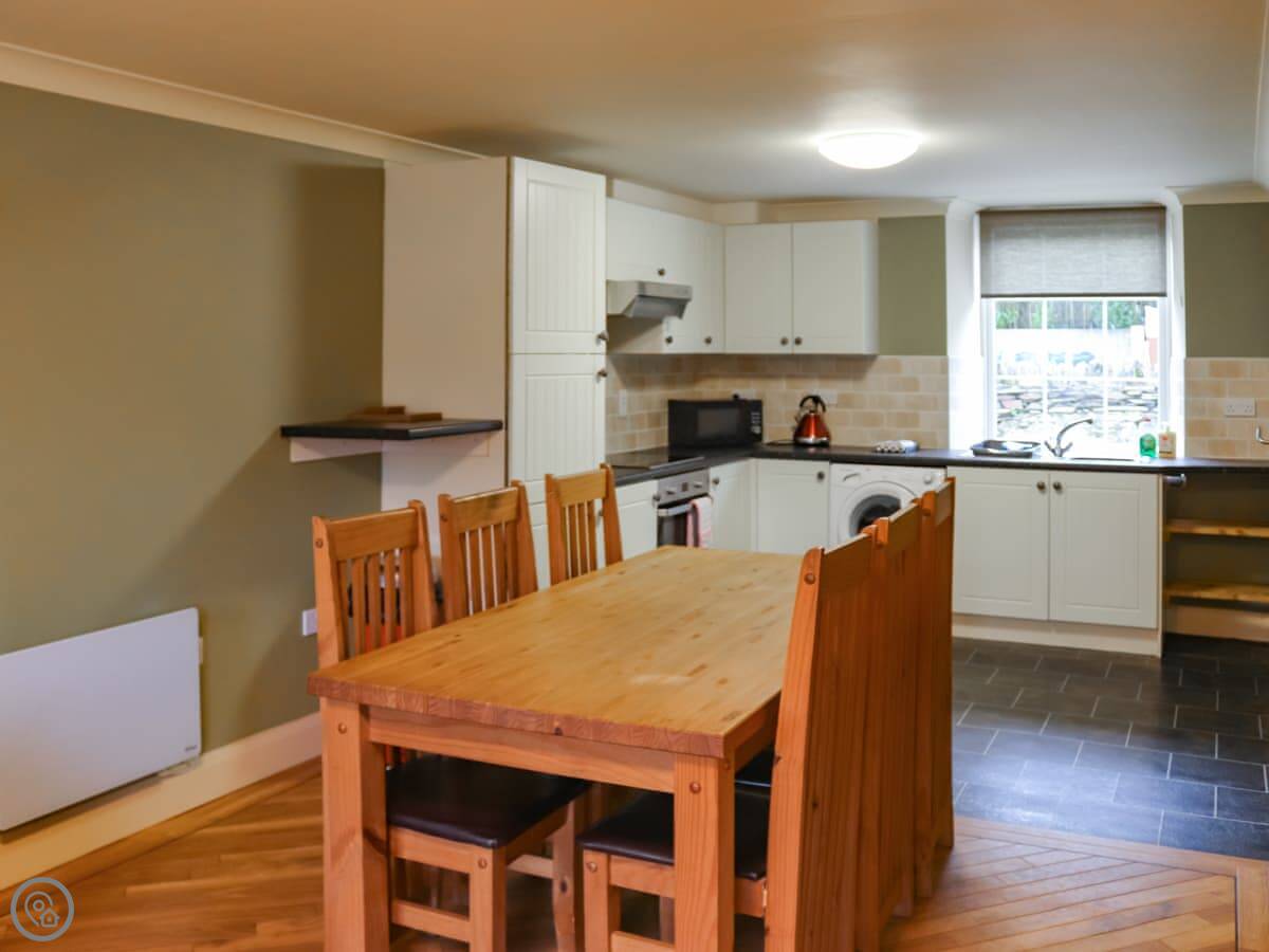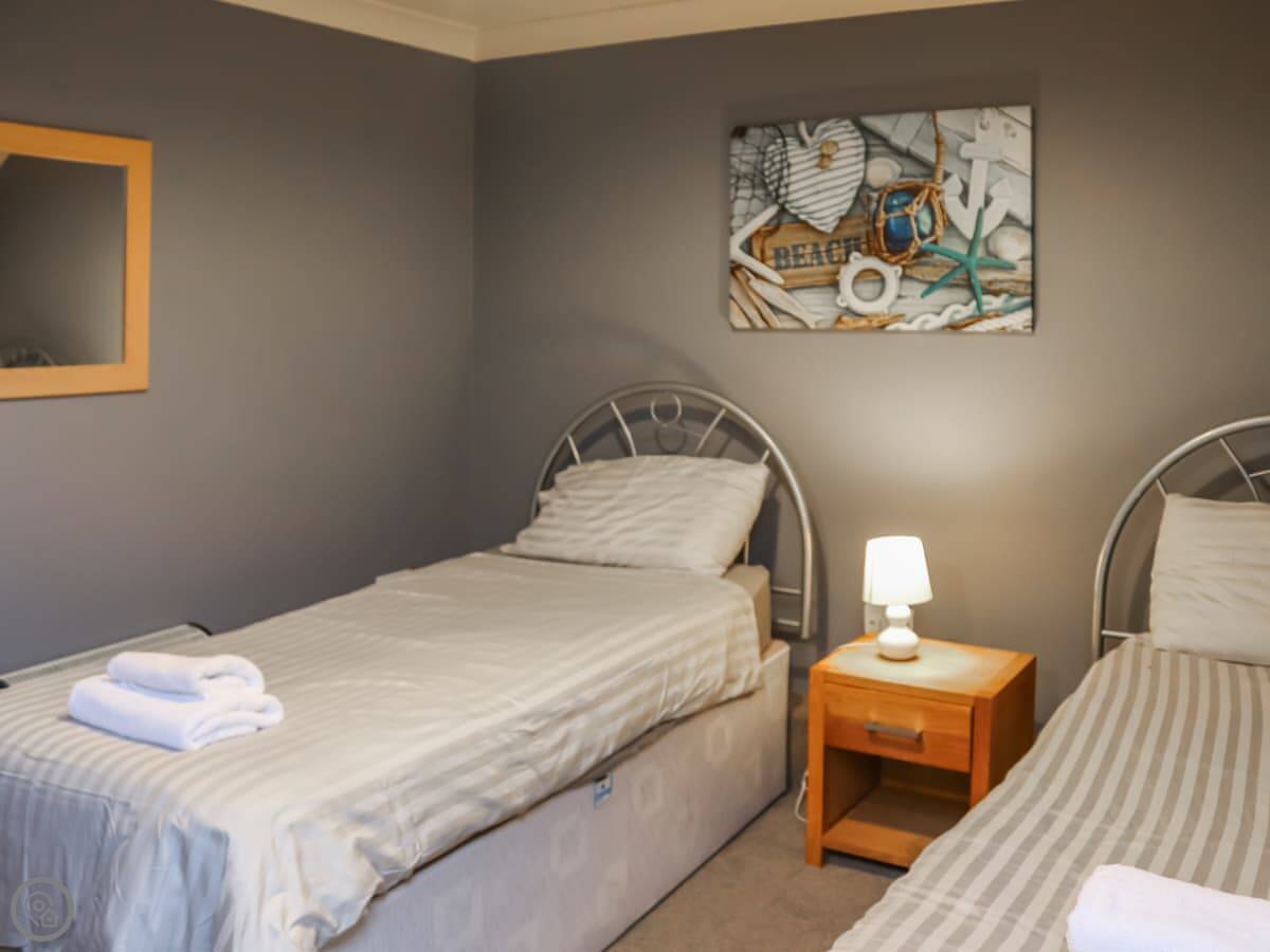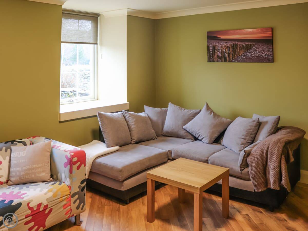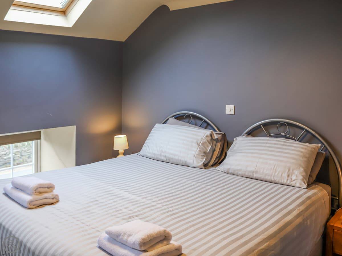 It sleeps five. Two bedrooms, a super king and a room with three singles. One bathroom. The stairs are typical cottage stairs. It's got a 4 Star rating, so it's comfortable and has everything you need, but it's not enormous. The living area is open plan.
