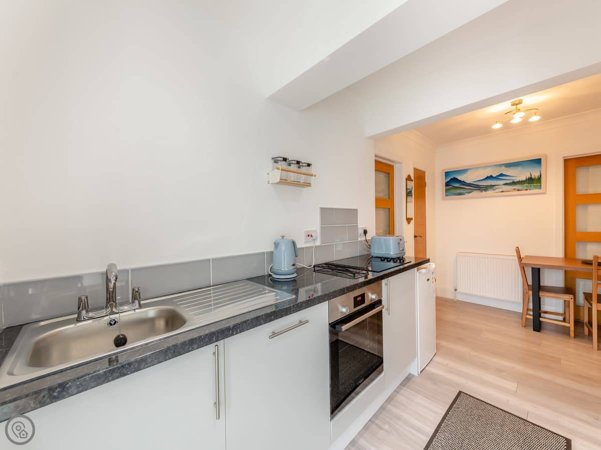 It’s got a 5 Star rating. That means it’s been finished to a high standard. Everything’s new and works properly. It’s all on one level, so no stairs. There's a small patio area outside the front.