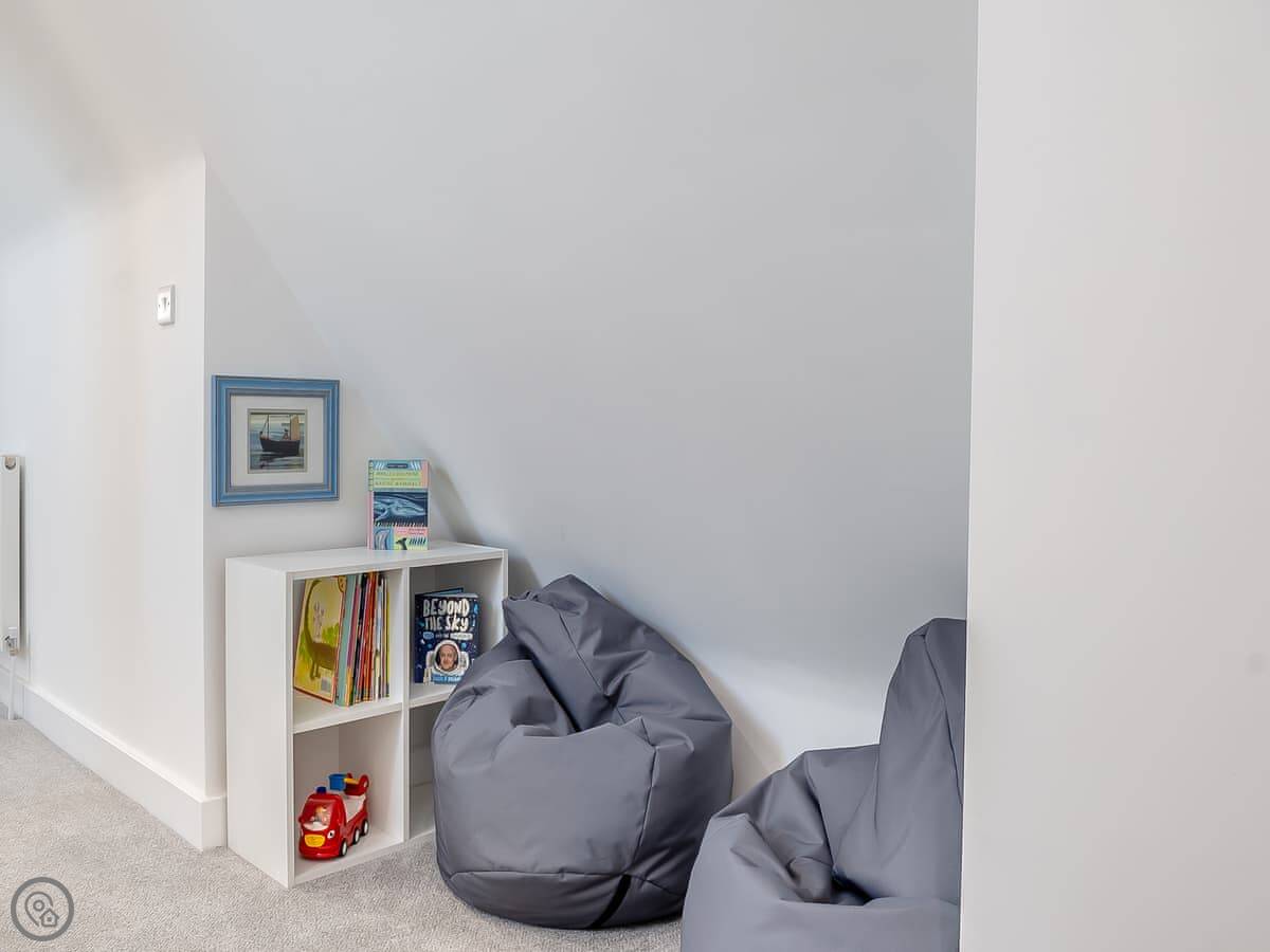In terms of facilities, it's got what you'd expect: WiFi, TV, washing machine, dishwasher. Bedding and towels are included. There's a cot and a highchair if you need them.