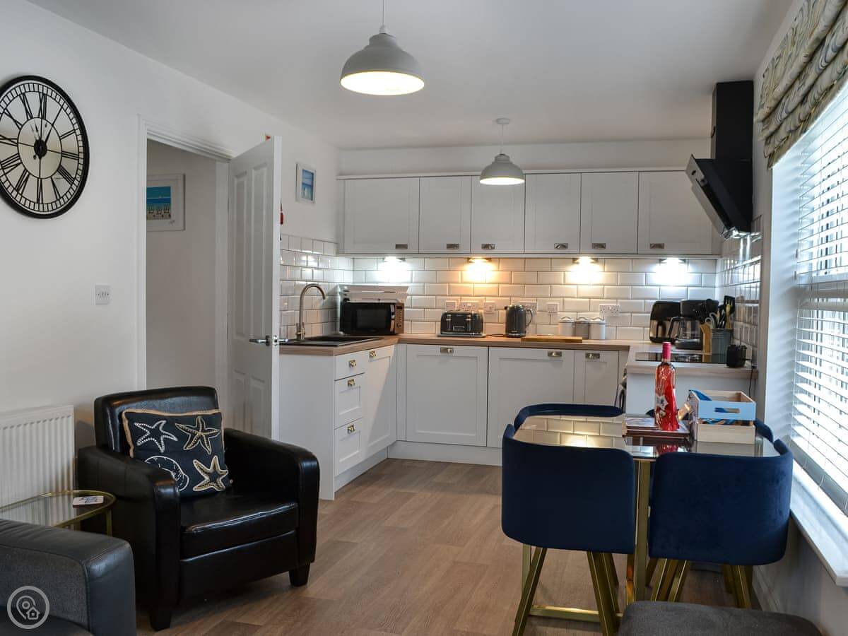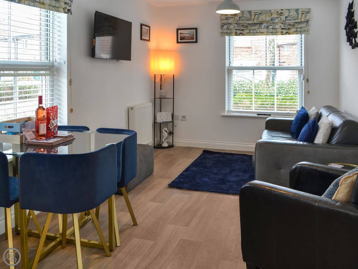 This is Sunrise Cove. It's a ground-floor apartment in Primrose Valley, part of The Bay holiday village near Filey.