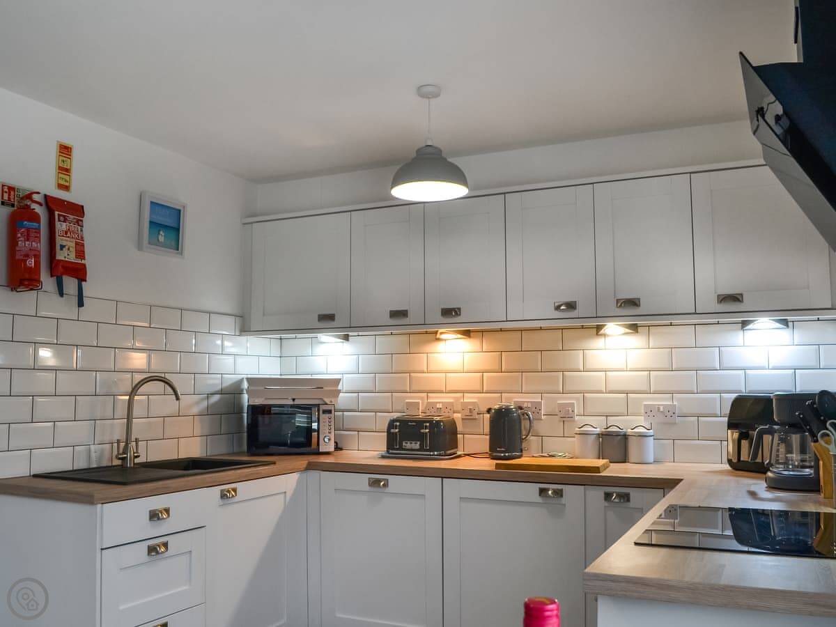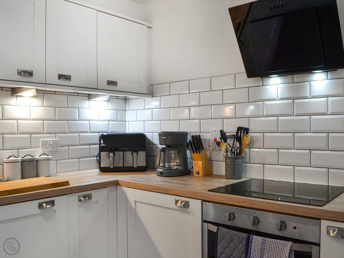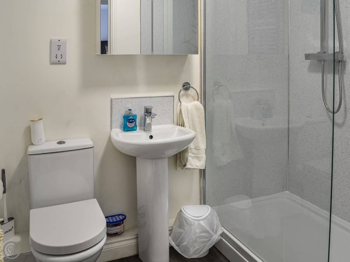 It sleeps four, but it's one bedroom. That's because the sofa in the living area is a sofa bed. There's one bathroom with a shower. It's got a 4 Star rating, so it's modern and comfortable. We take up to two dogs.