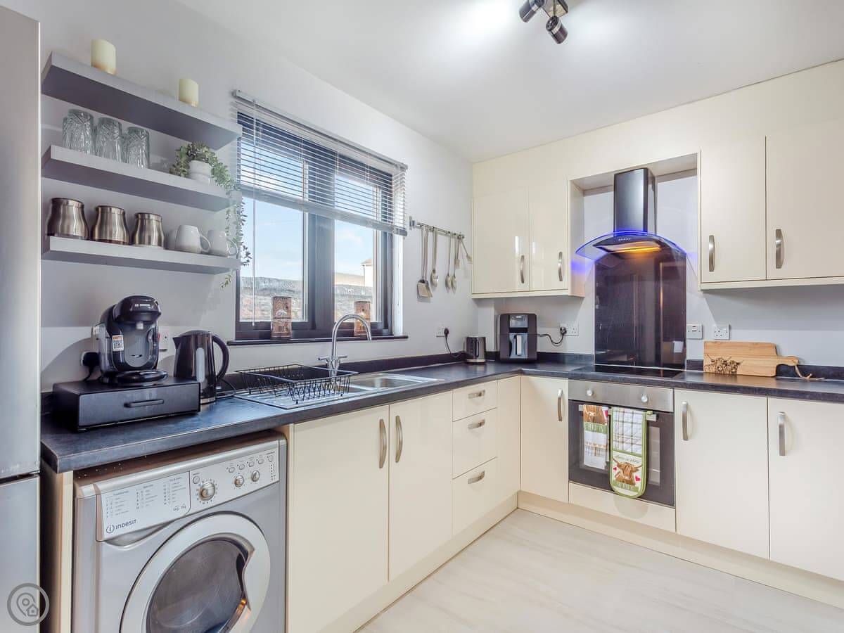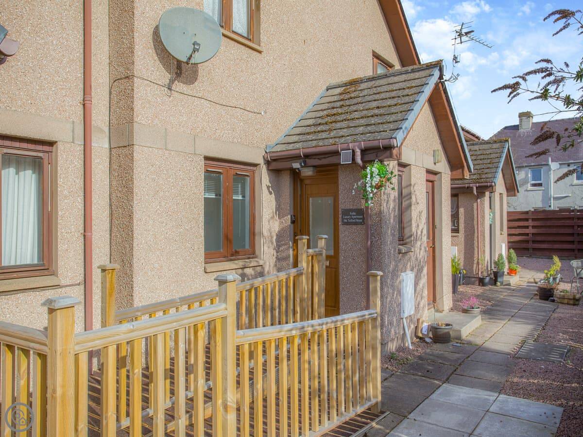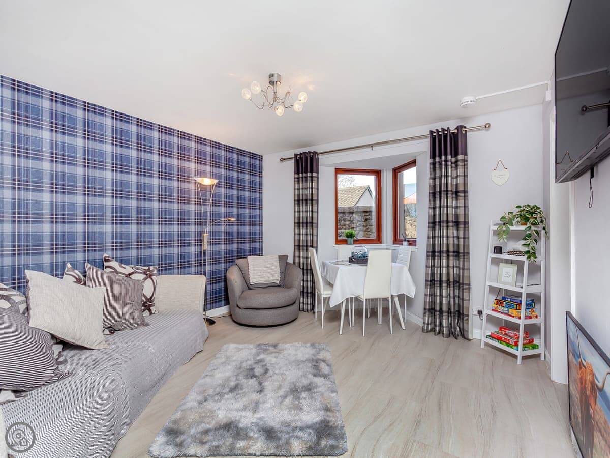 This is the Failte apartment in Inverness. It's on the ground floor of a building near the town centre. You can walk into the main part of town in a few minutes.