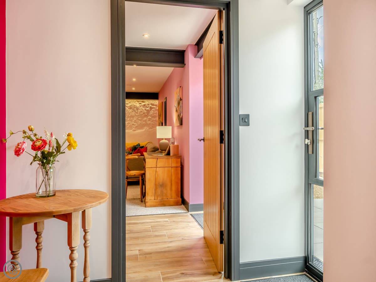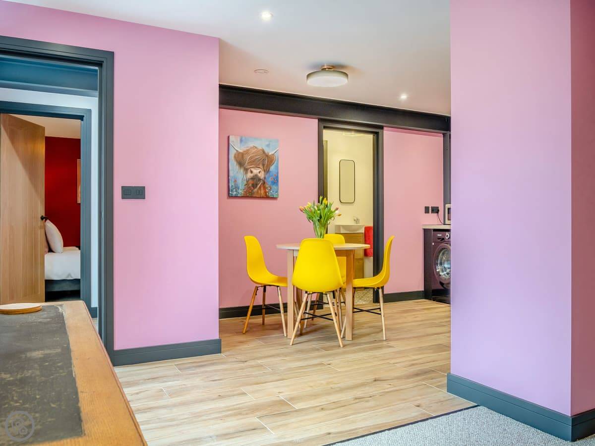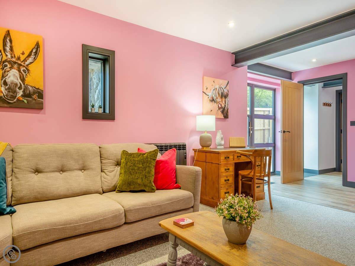 The Hideaway is an apartment attached to the Chessell Pottery Cafe near Shalcombe. It's ground floor, so no steps to worry about. The cafe courtyard is right outside.