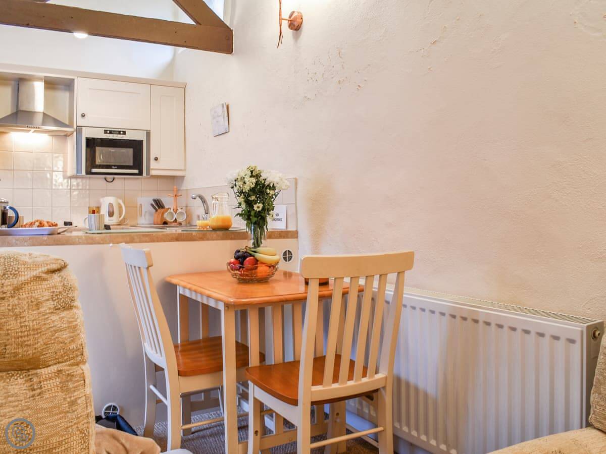 It's for two people. One bedroom, one bathroom. It's a 4 Star place. That means it's comfortable and well equipped, but it's not huge. It's a good size for two. The main room has the kitchen, a sofa, and a table. There's a stable door.