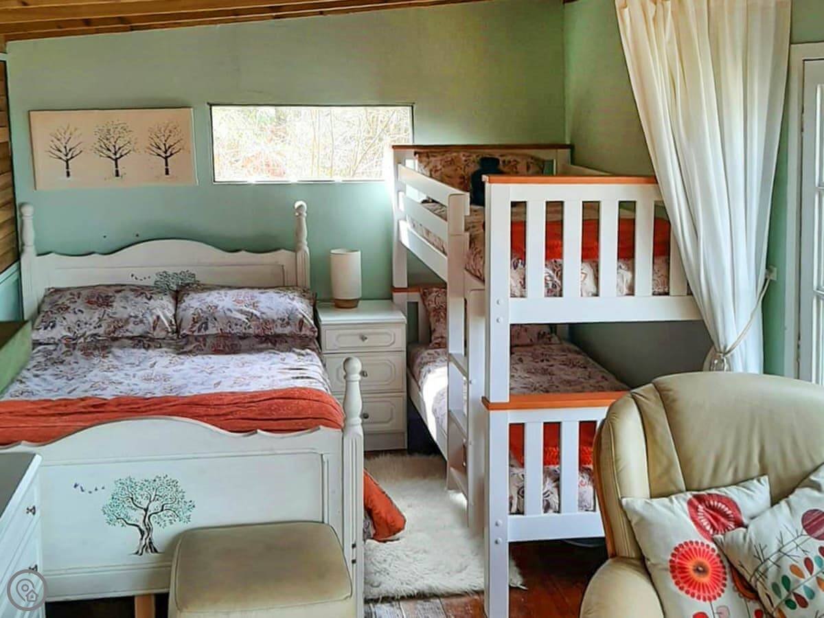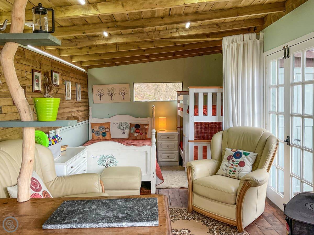 The Cabin in the Woods is near Pencarreg in Carmarthenshire. It’s called that because it literally is a cabin in the woods. It's off-grid, which means no mains electricity or water. It’s detached and you have about an acre of private woodland to yourselves.
