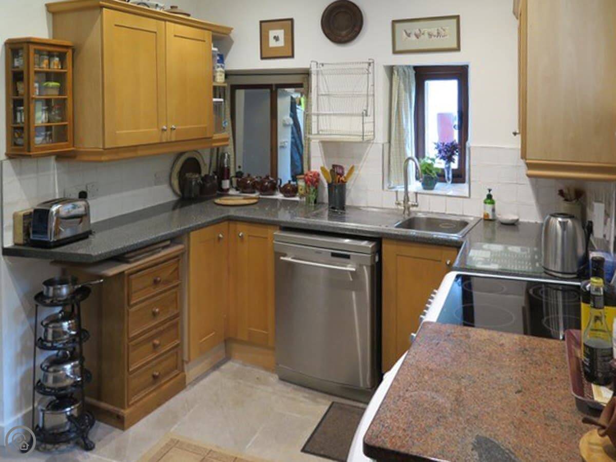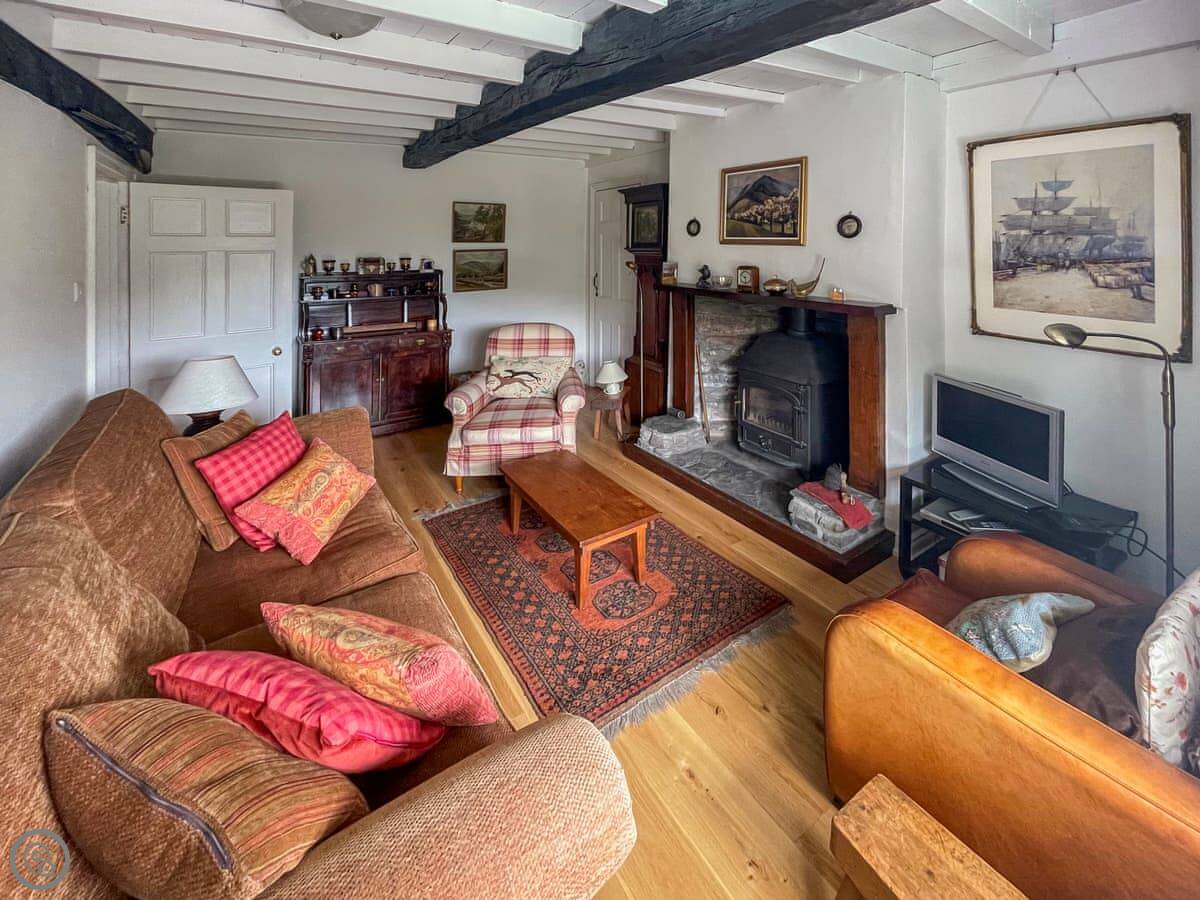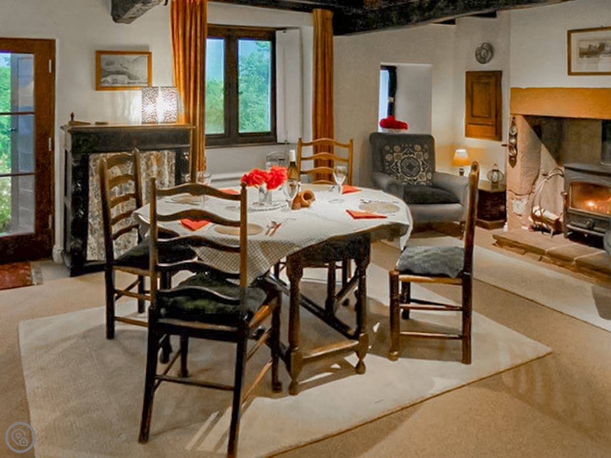 There are two wood-burning stoves, one in the sitting room and one in the dining room. The kitchen has what you need. It's got a 3 Star rating, so it's comfortable and clean but it's not a show home. It's a proper old house.