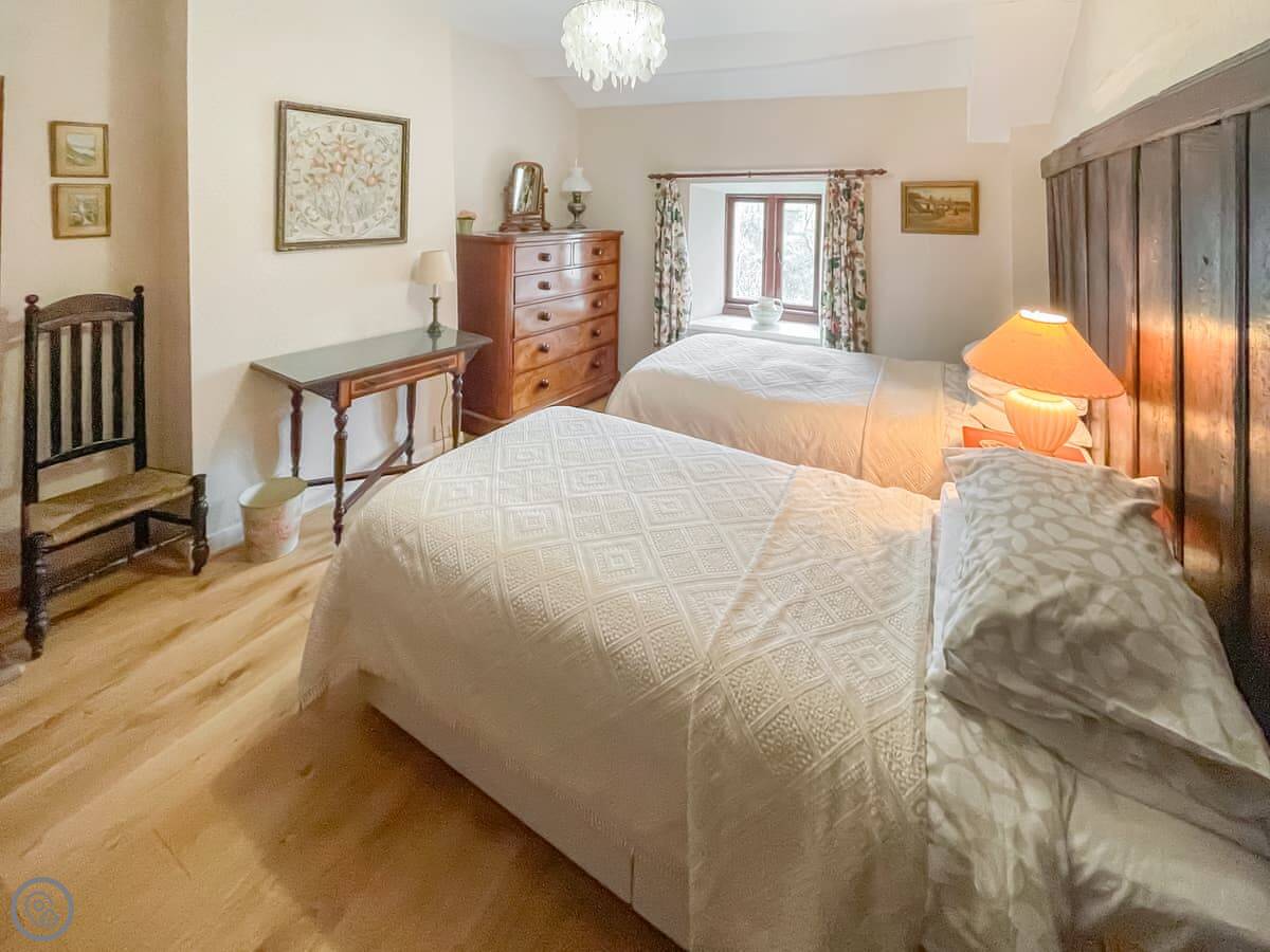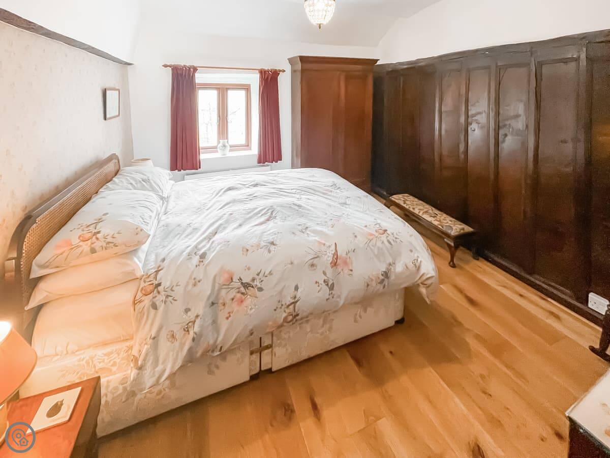 It's an old farmhouse, from the 1600s. The walls are thick, and some of them aren't straight. That's just how it is. It sleeps six. Three bedrooms: one king, one double, one twin. One bathroom with a shower.