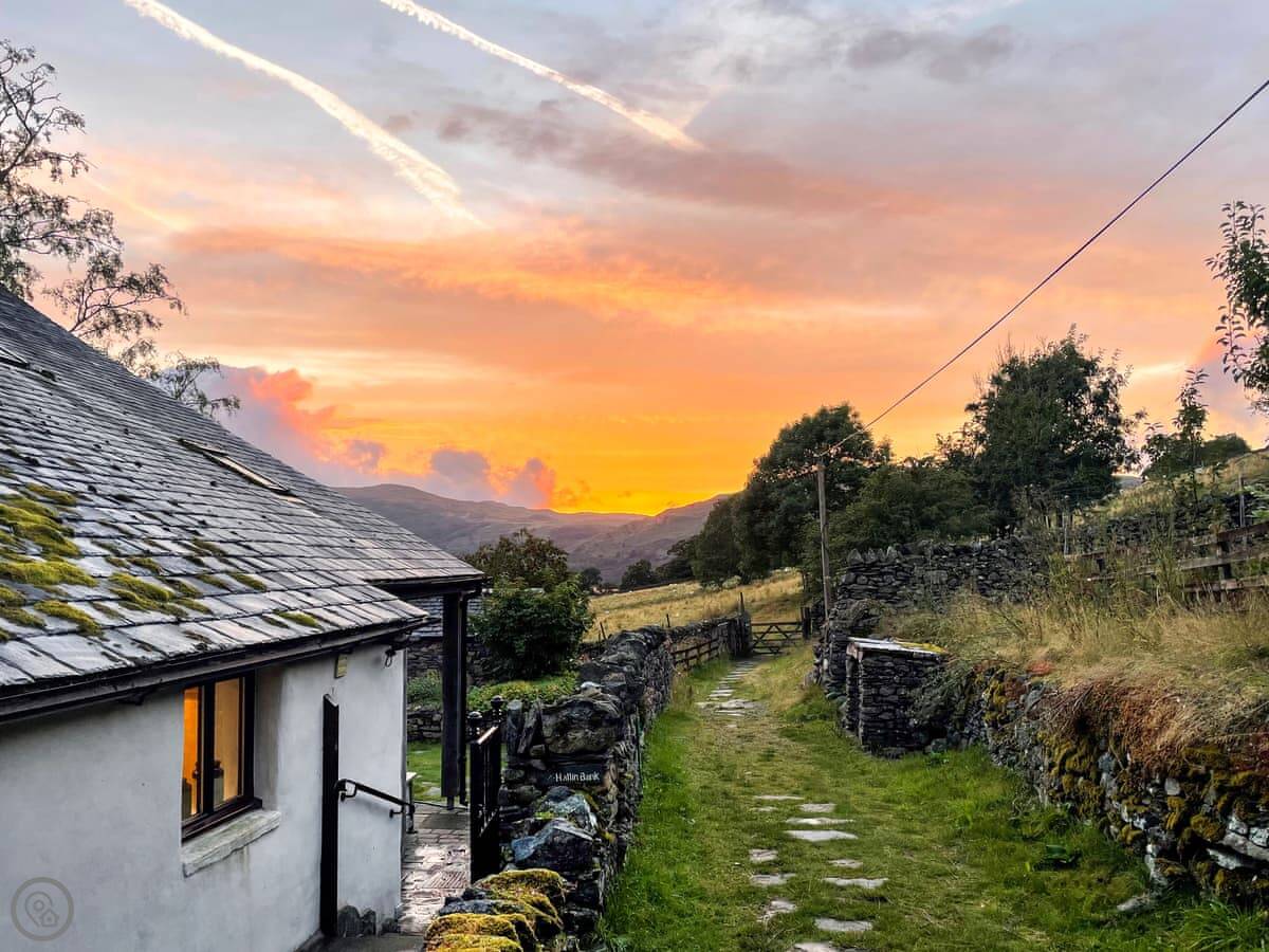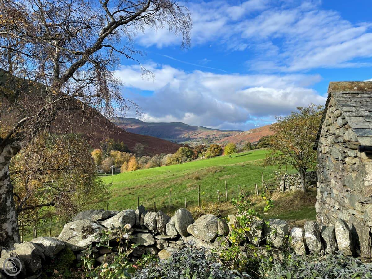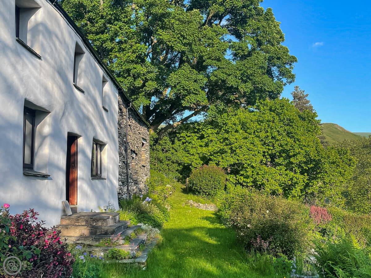 Outside, there's a private terrace. You can walk through the orchard to the beck. The valley itself is very quiet. You can walk straight up onto the fells from the door. Hallin Fell is right there.