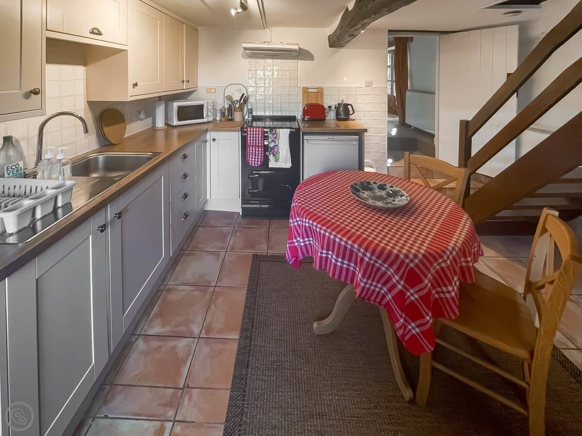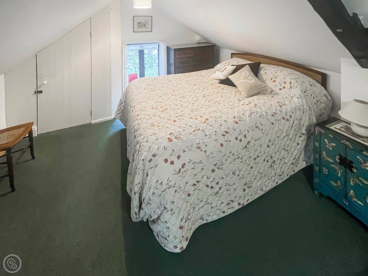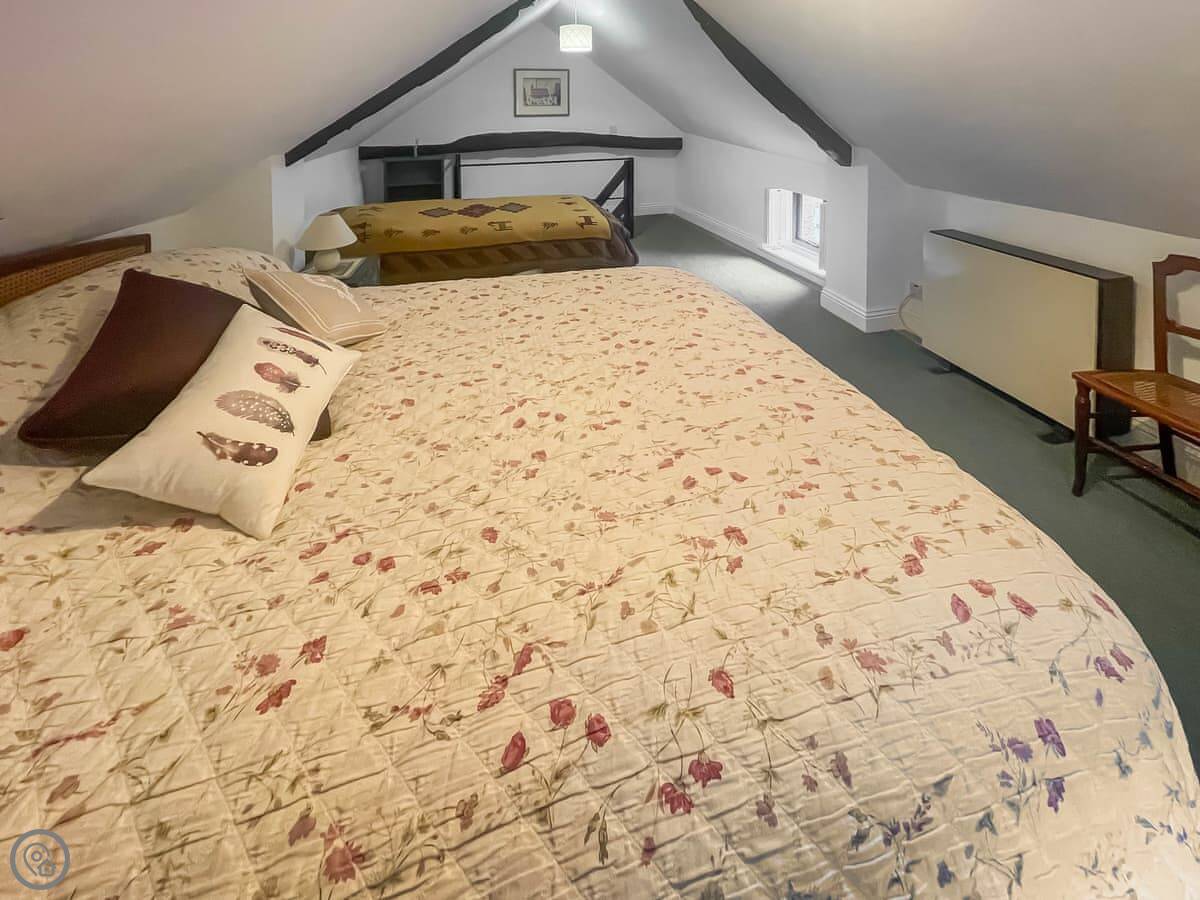 It sleeps three, all in one loft room upstairs. There's a double bed and a single. One bathroom with a shower on the ground floor. It's a 3 Star place, so it's comfortable and clean but not luxury. The stairs up to the bedroom are a proper ladder staircase, so you need to be okay with that.