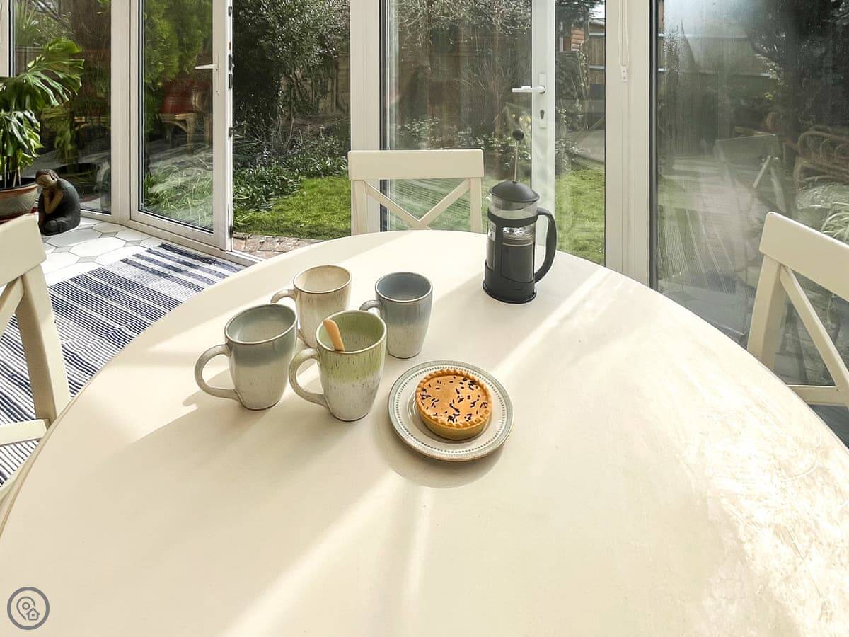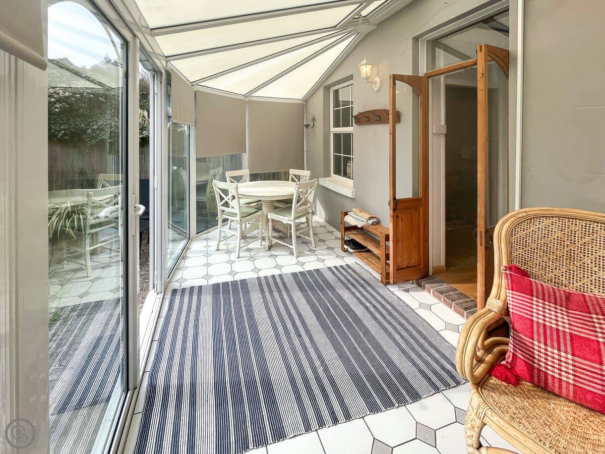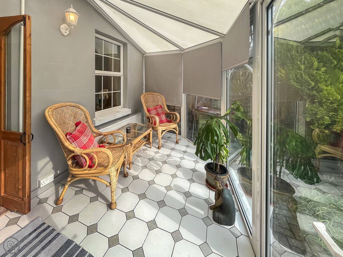 There's a good-sized garden that's fully enclosed, which is useful if you're bringing a dog. We allow one well-behaved pet. There's also a conservatory on the back that's nice and bright.