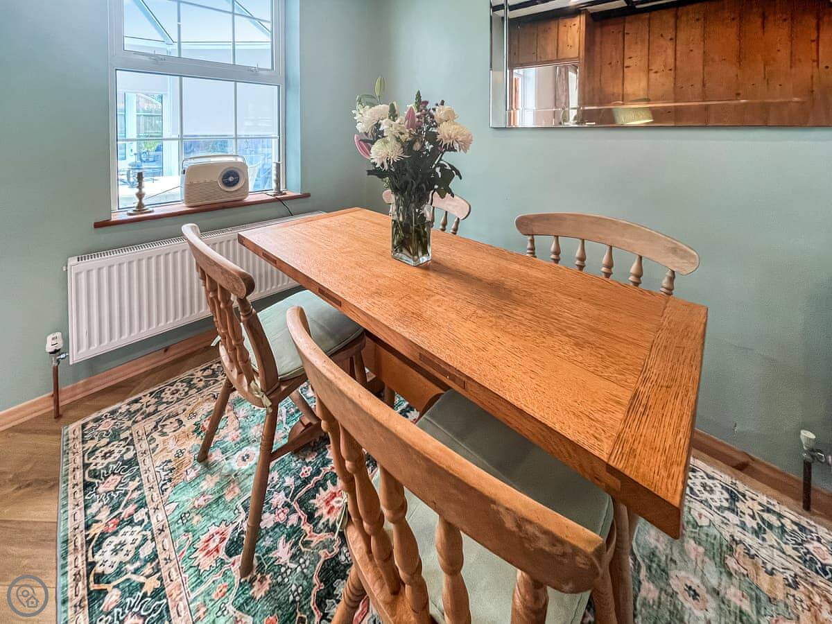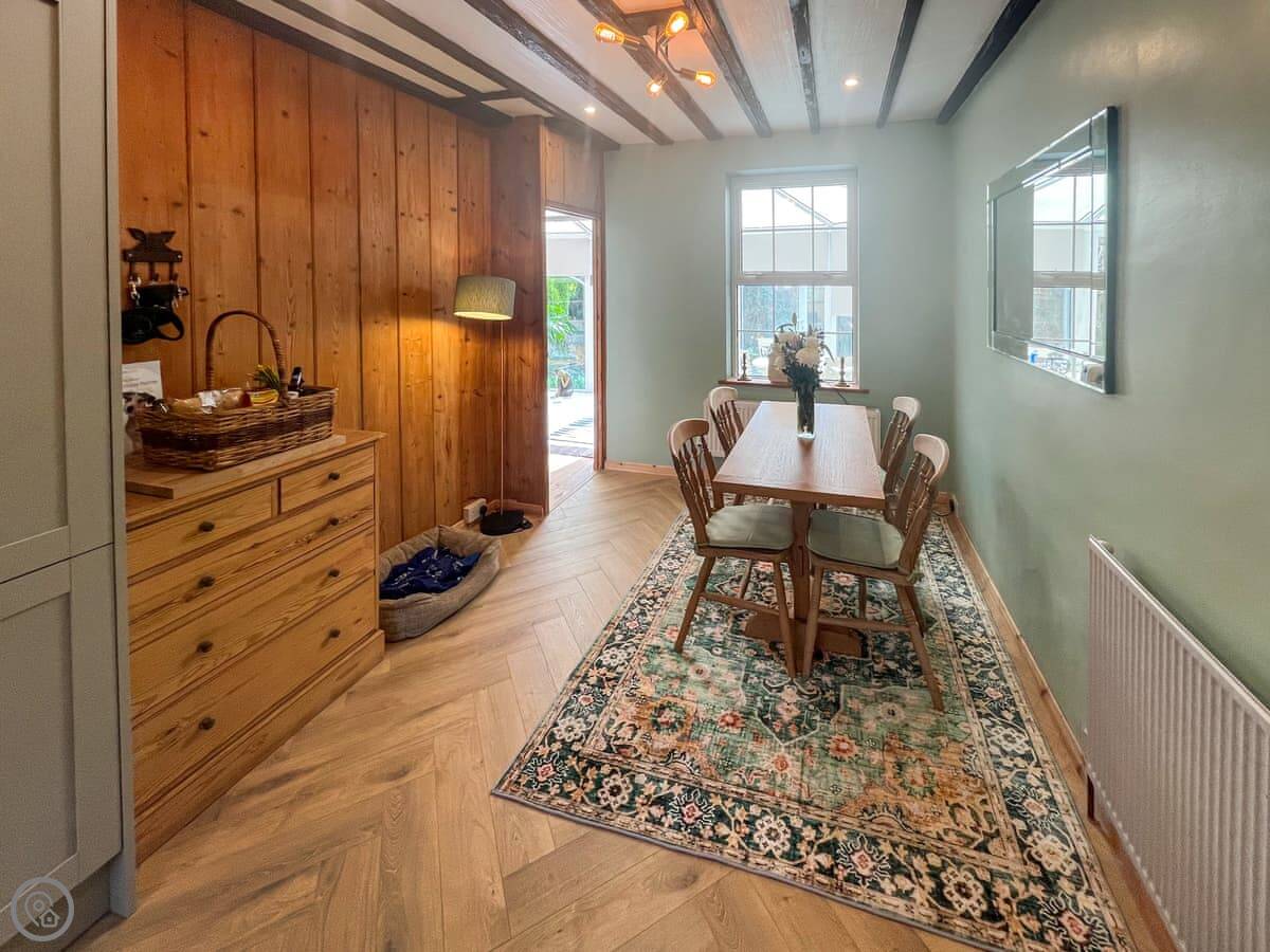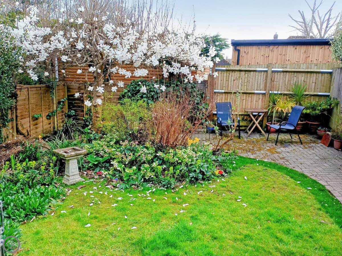 There's a good-sized garden that's fully enclosed, which is useful if you're bringing a dog. We allow one well-behaved pet. There's also a conservatory on the back that's nice and bright.