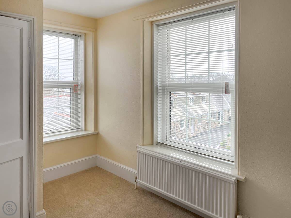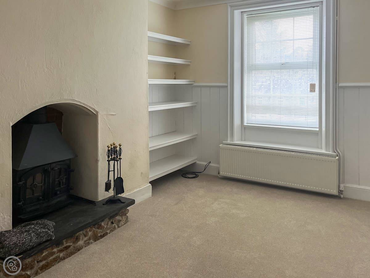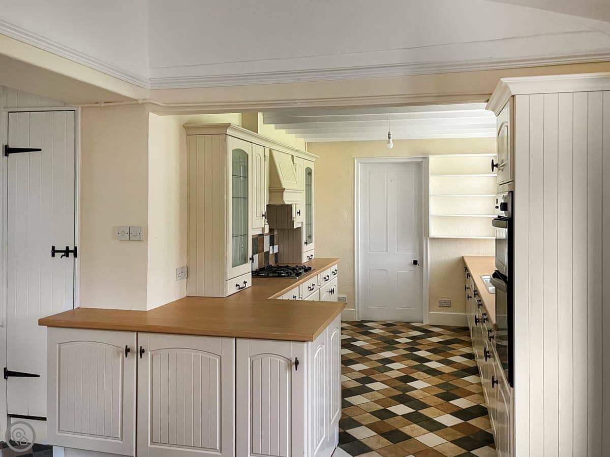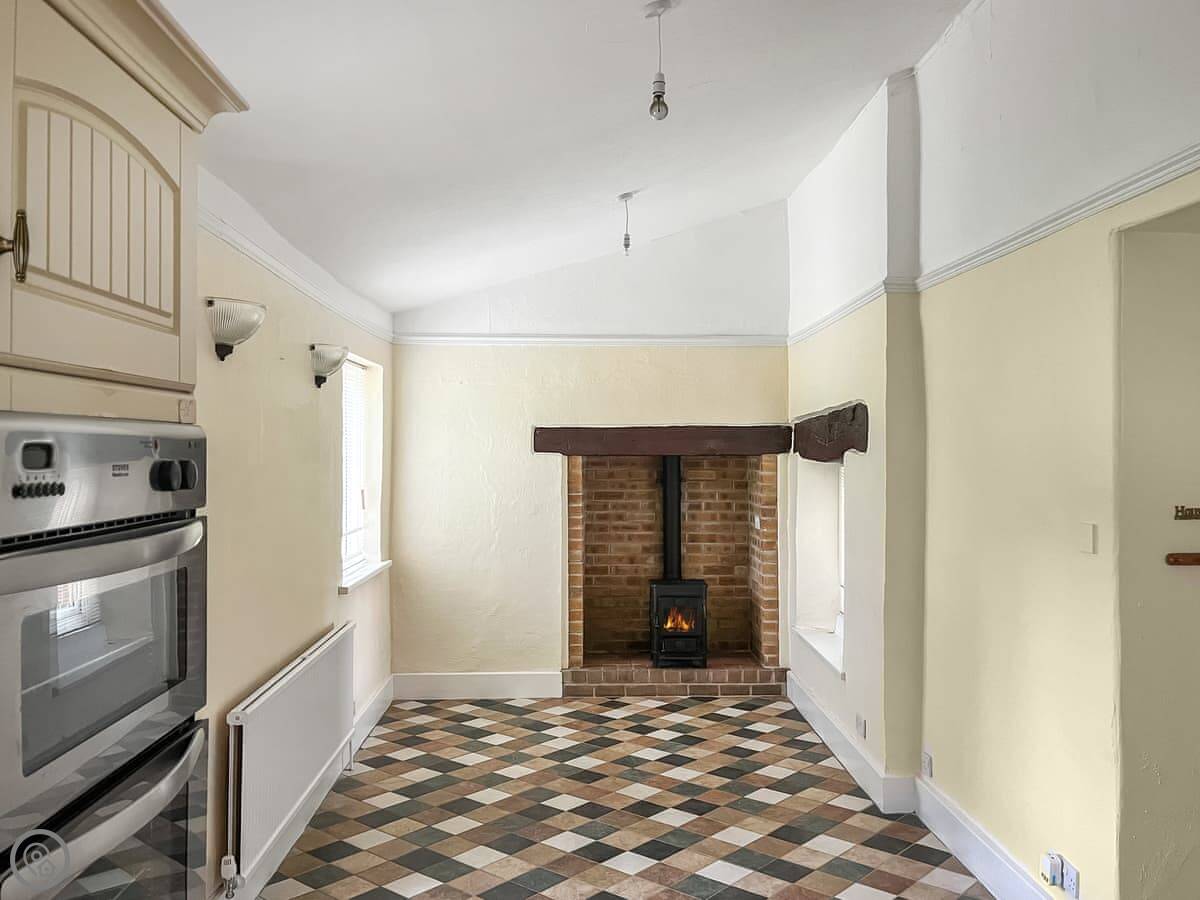 The place has character. The stairs to the bunk room are quite steep and narrow, they're original. There's a wood burner in the living room and one in the dining room. The kitchen is a good size. The garden is lawned, big enough for kids to run around in.