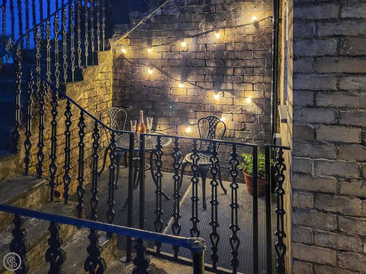 Outside there's a private, enclosed patio. You can store bikes if you've brought them.