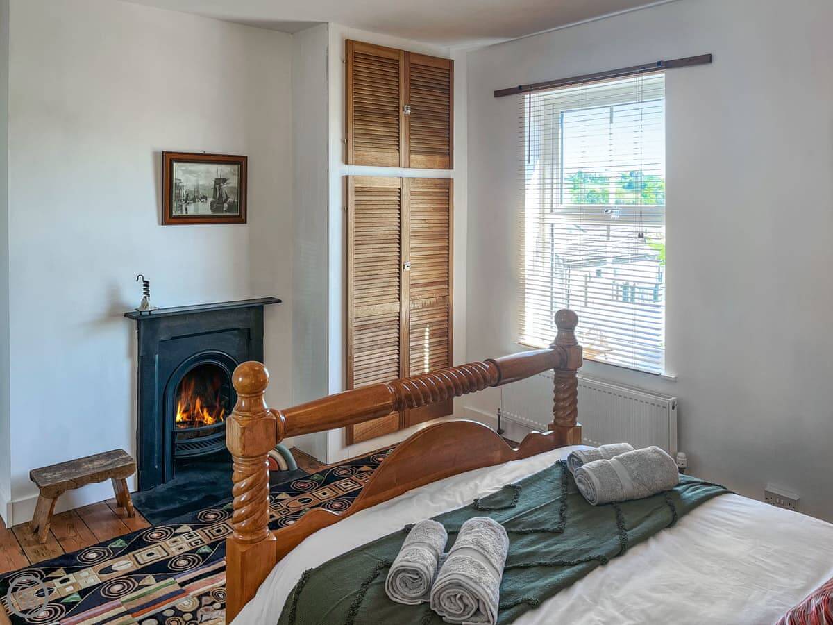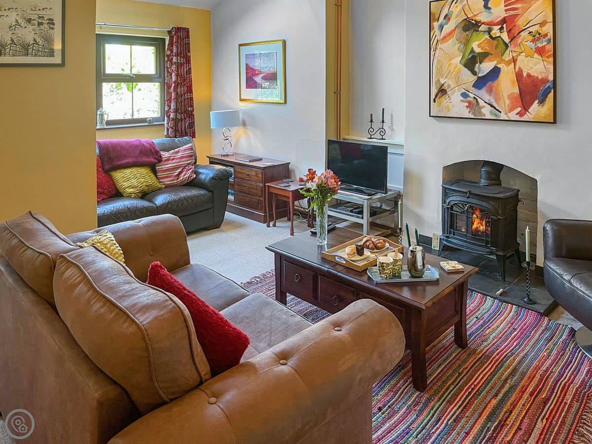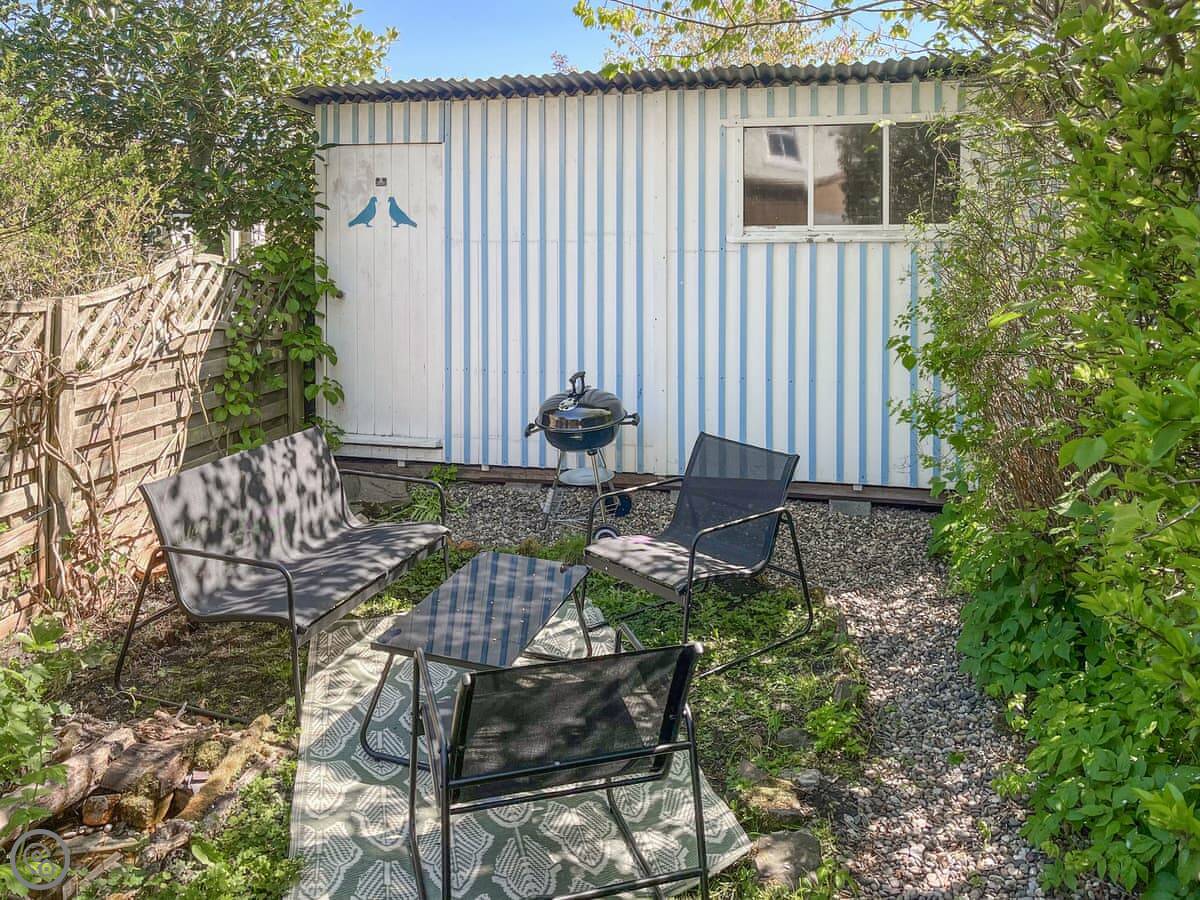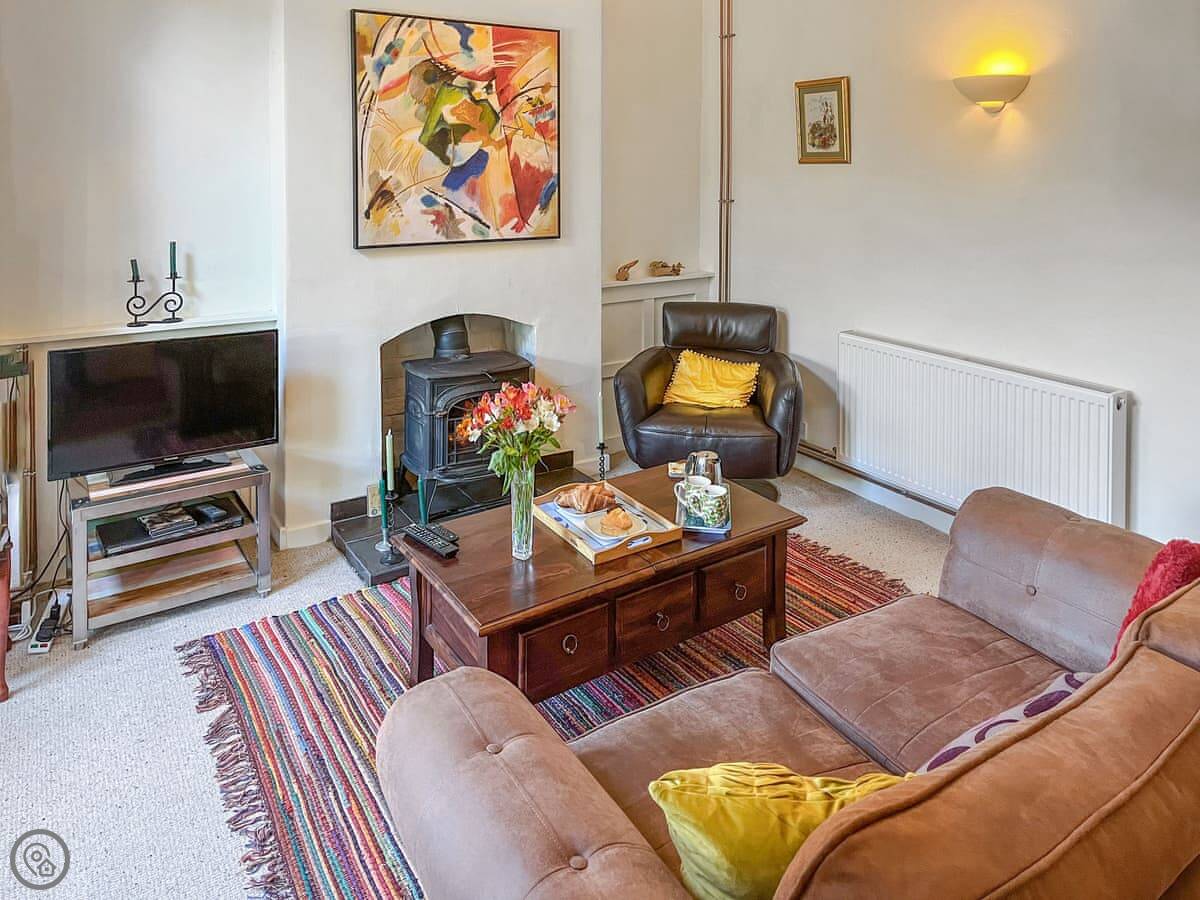 There's a wood burner in the living room. It heats the place up well. The kitchen is a decent size, and there's a dishwasher and a washing machine. The garden at the back is enclosed, which is good if you've got a dog or kids. There's a BBQ out there too.