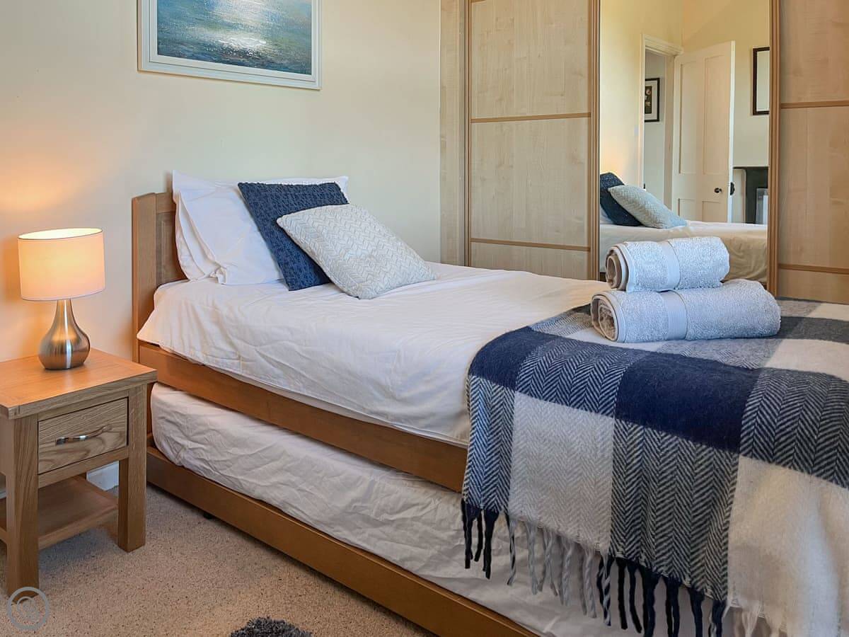 It sleeps six. Three bedrooms and one bathroom. It's got a 4 Star rating, which really just means it's comfortable and everything works. The stairs are standard for a cottage. Not a problem, but mind your head on the way up to the top floor bedroom.