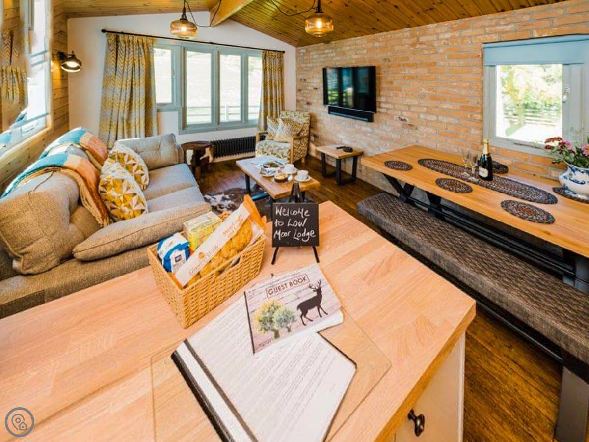 Low Moor Lodge is a wooden holiday lodge in Burniston. It's about three miles from Scarborough North Bay. The views from the front are over open fields towards the sea. It's modern and detached, so you're on your own.