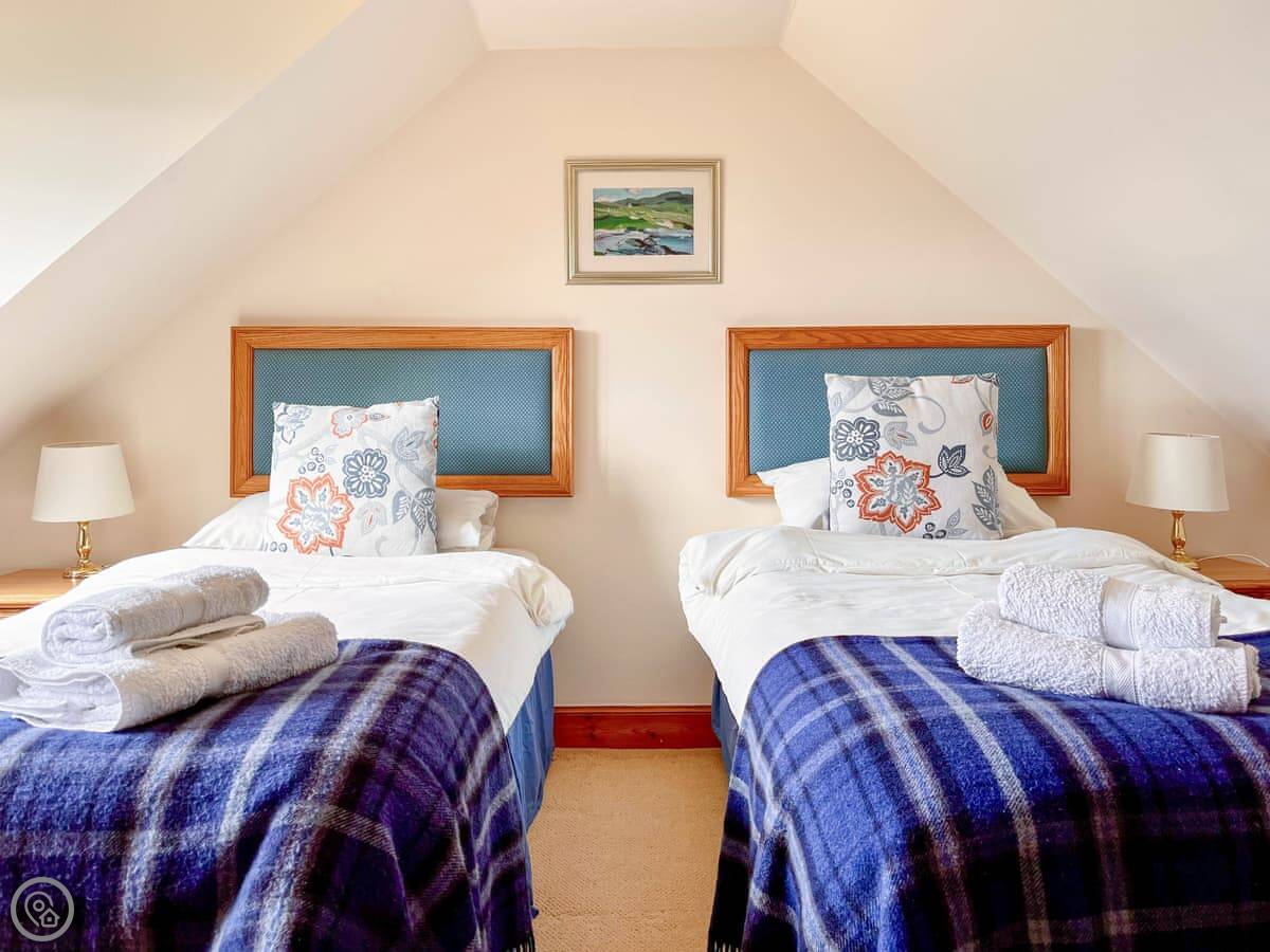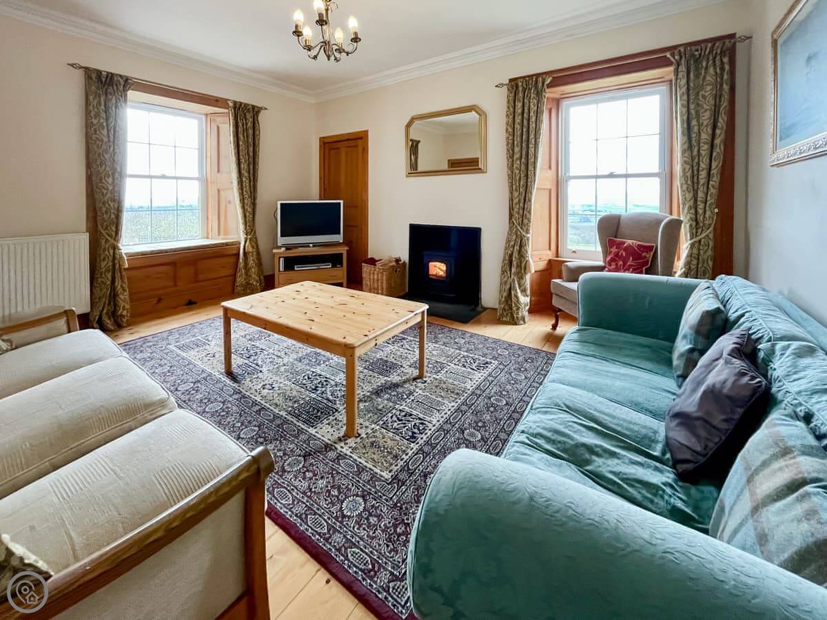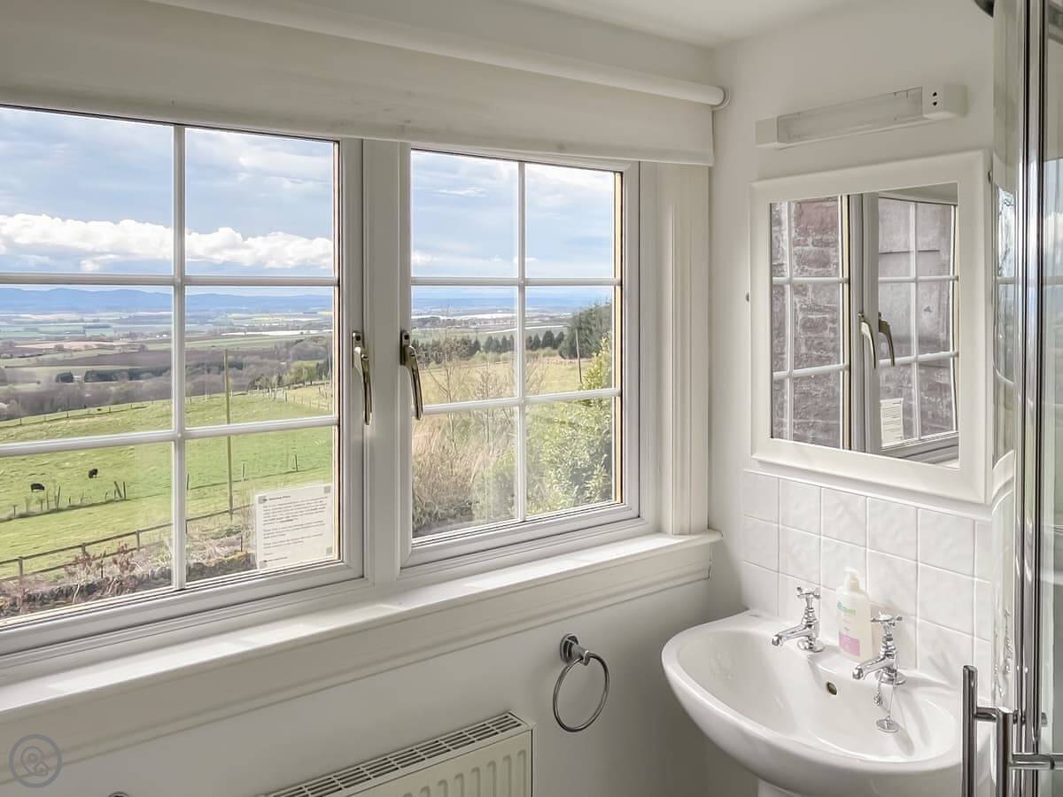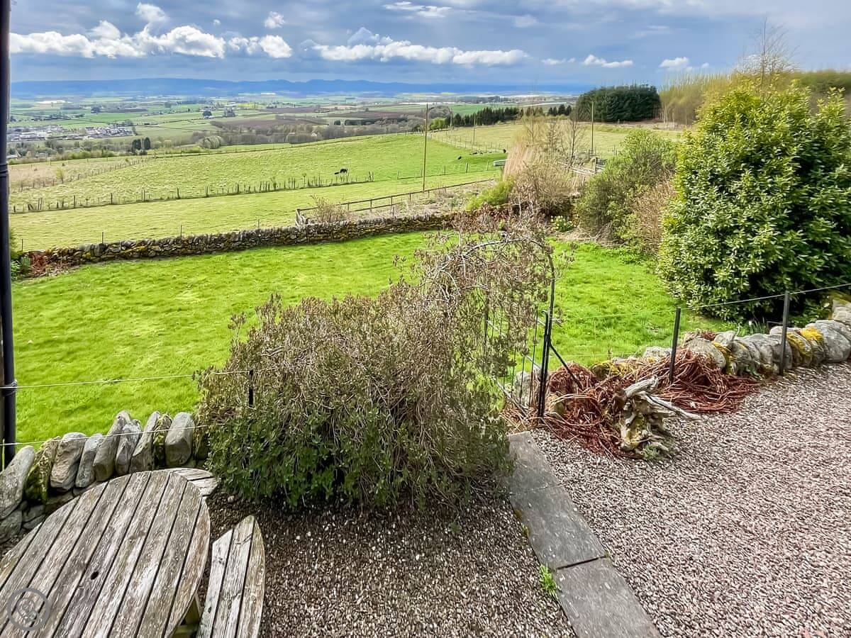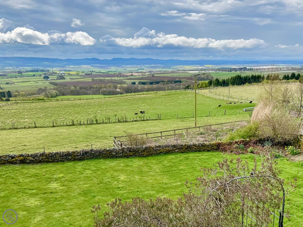 Kirklandbank is a farmhouse just outside Alyth. It's detached. You're on the farm drive itself, so it's quiet. There are fields and the Glenshee hills around you.