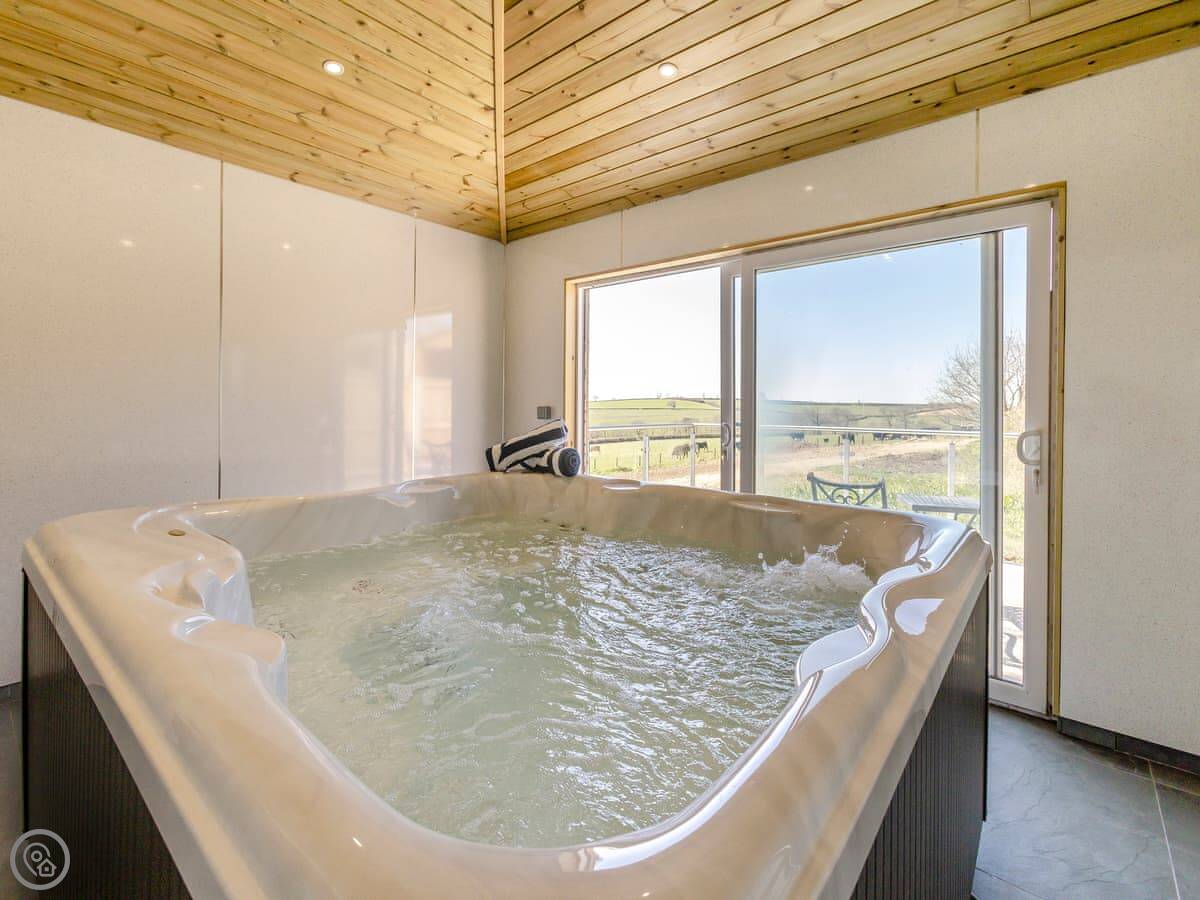 You get your own hot tub in a private room next to the cottage. There's also a shared games room with table tennis and football for everyone in the three cottages.