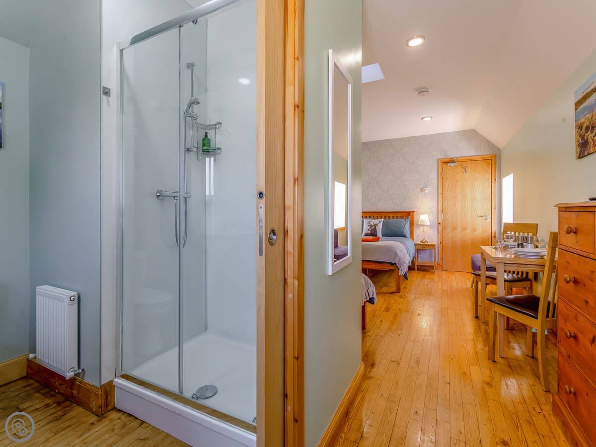 It's got a 4 Star rating. It's a studio, so it's all one room. There's a kitchen area and the beds are at one end. You have your own front door and parking right outside.