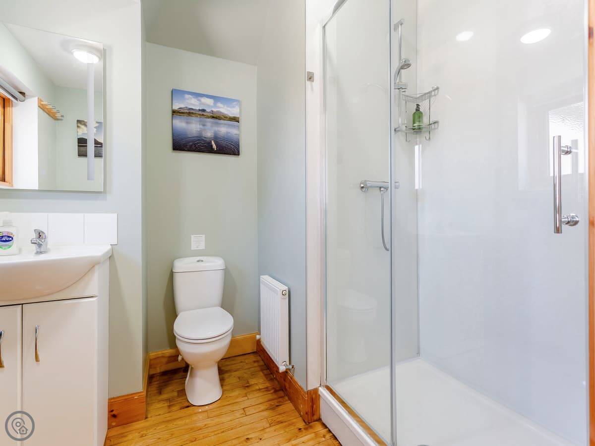 Inside, it's got what you need. TV, WiFi, a shower. Bedding and towels are included. There's a cot if you need it. You can bring one dog.