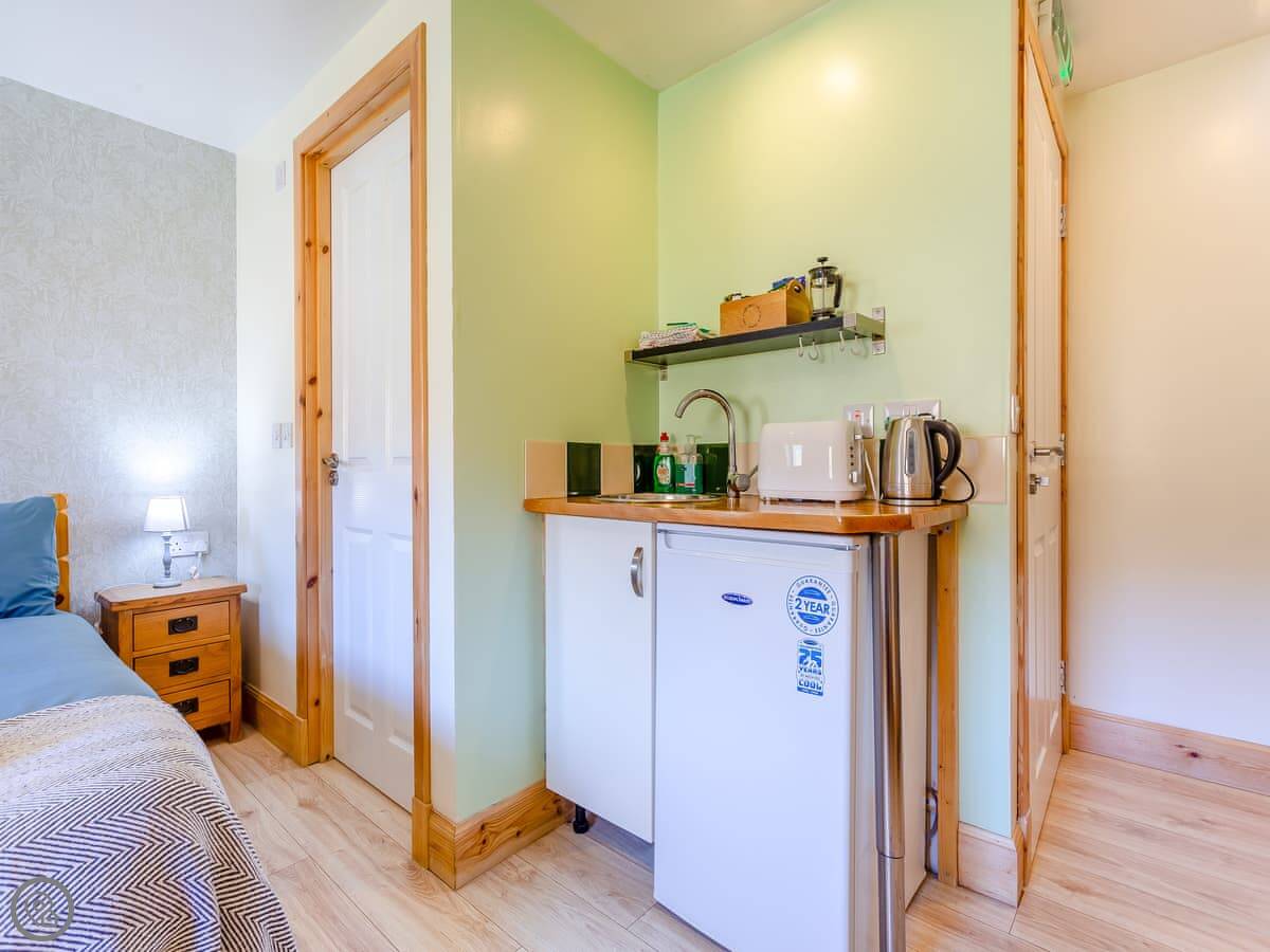 This is the Beinn Uidhe studio apartment in Inchnadamph. It's part of the lodge here, but it's a self-contained flat. It's for two people, one room. It has a 4 Star rating.