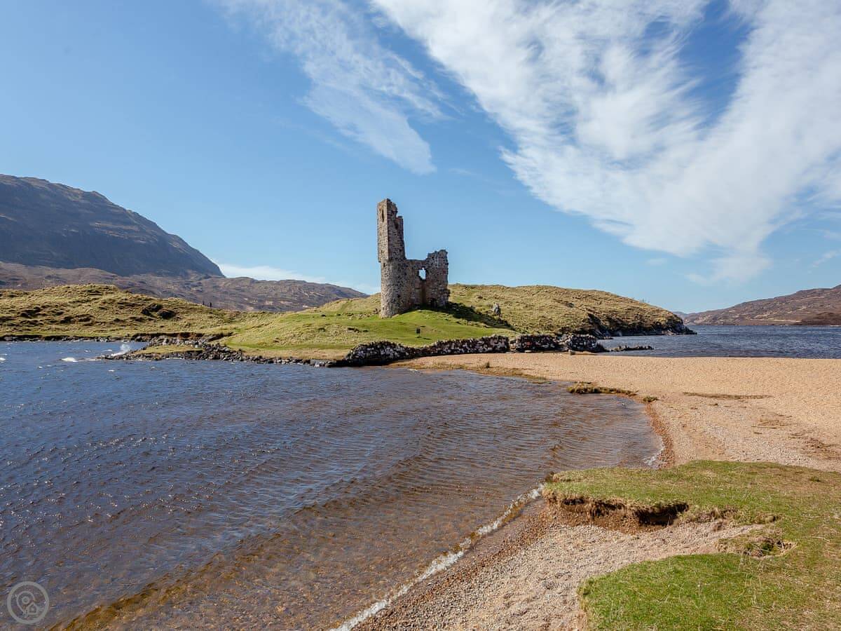For walking, you're right in it. Ben More Assynt and Conival are right there if you're after Munros. The Walkhighlands Assynt page has good route details. The Bone Caves are a short walk away, which are interesting. Ardvreck Castle ruins are on the loch shore, about a five minute drive.