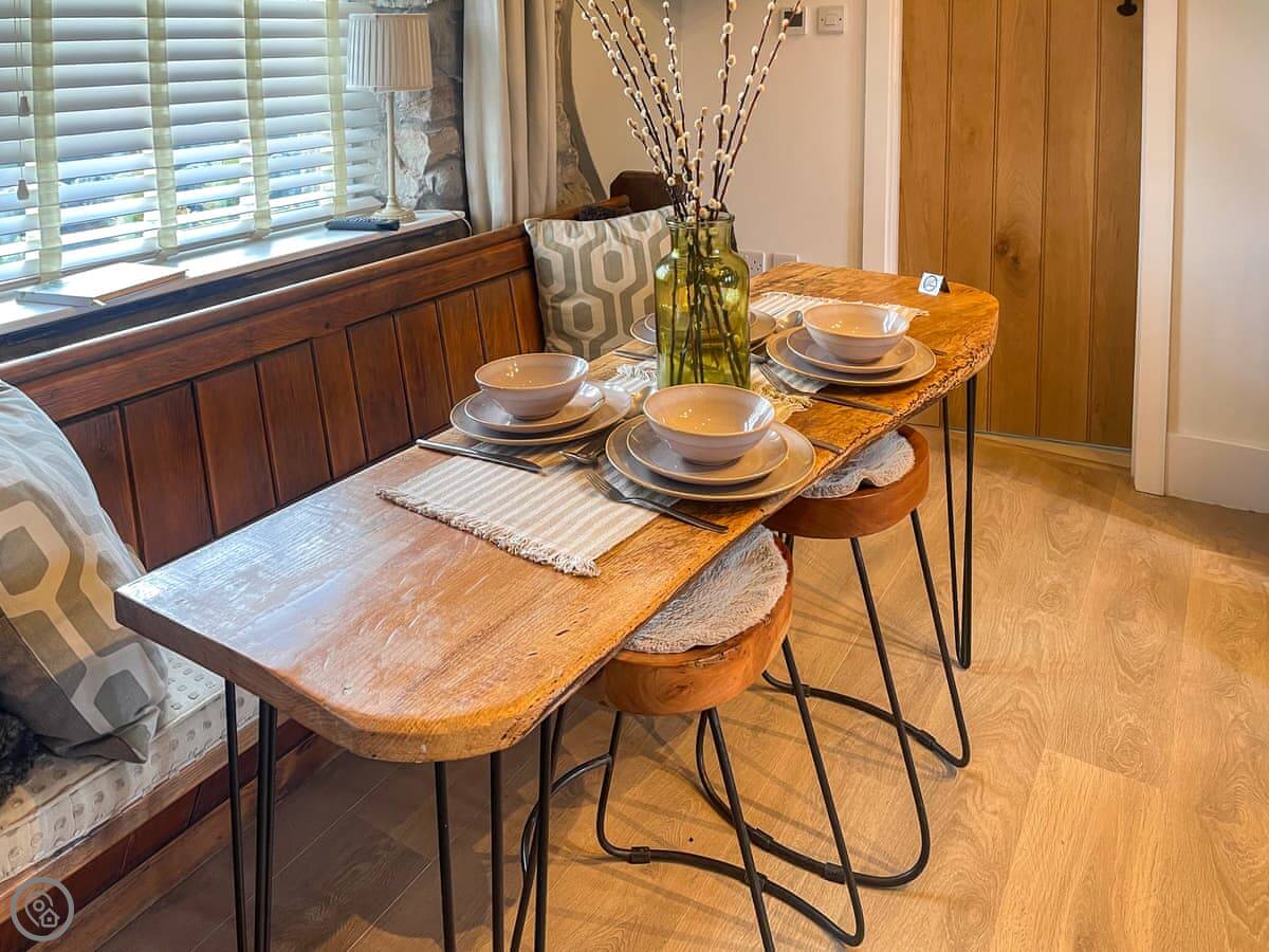 It sleeps four. Two double bedrooms and one bathroom. It's got a 4 Star rating. It's been done up recently, so it's comfortable and clean. The shower is a good power one. There's a wood burner in the living area for the colder nights, and we leave you a bit of wood to start you off.