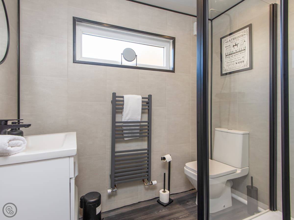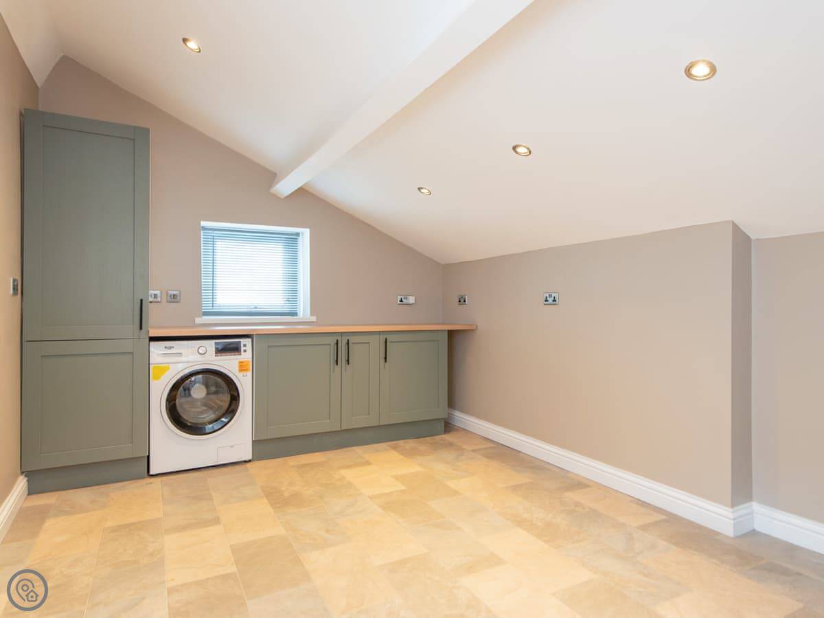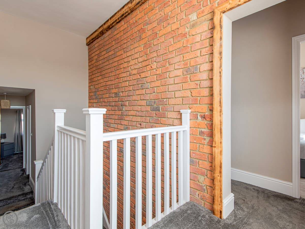 The stairs are fine. There's an open plan living area downstairs with a wood burner. The kitchen's modern, it has a dishwasher. There's a games room with a pool table and two extra sofa beds, so you could fit more if you really needed to.