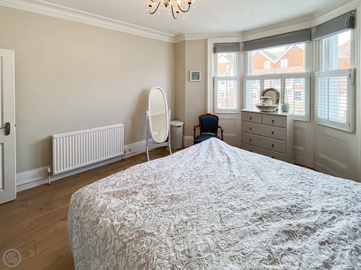 West Bay Apartment is in Westgate-on-Sea, which is part of Margate. It's a first floor flat, no lift. You can see a bit of the sea from the balcony.