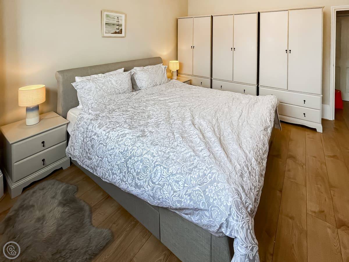 It's for two people. One bedroom, one bathroom. It's got a 4 Star rating, so it's a bit nicer in the finish. The bed is a king size.