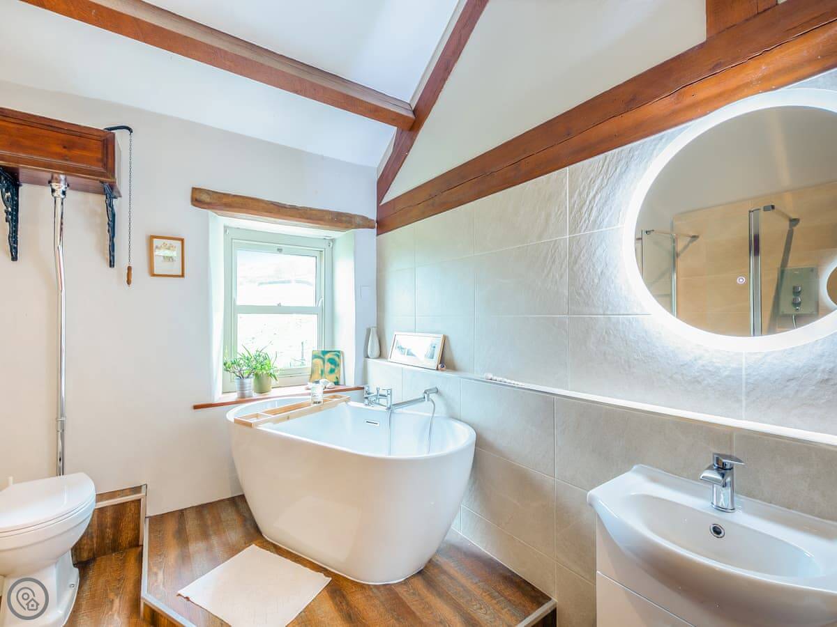 The main bathroom has a freestanding bath that looks out over the fields. All the windows have good views, to be honest. You'll see the Arten Gill viaduct from outside, where the steam trains run on the Settle to Carlisle line.