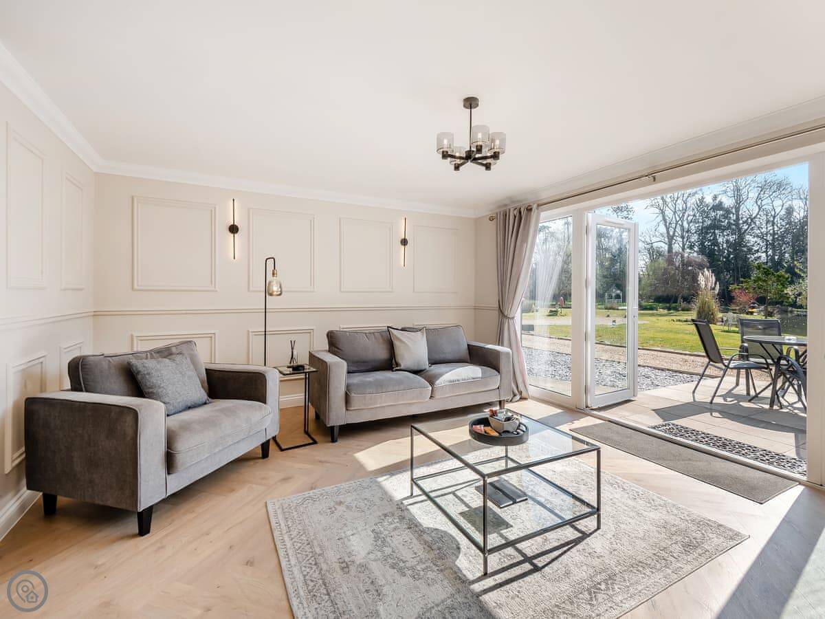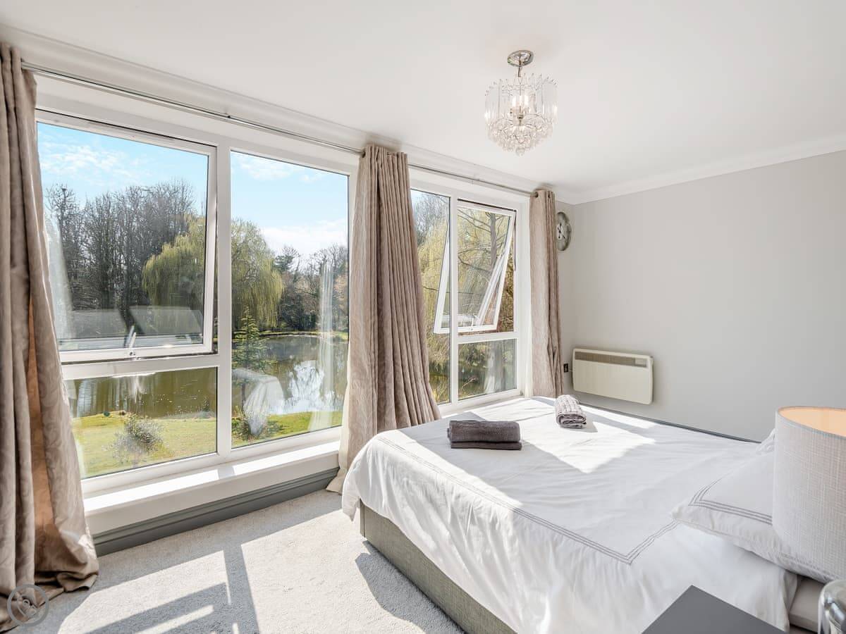 You look straight out onto one of the fishing lakes. That's the main thing. It's peaceful. The private patio faces the water. If you're into fishing, your stay includes access to course fish the lakes. If you're not, it's still a nice view to have with a cup of tea.
