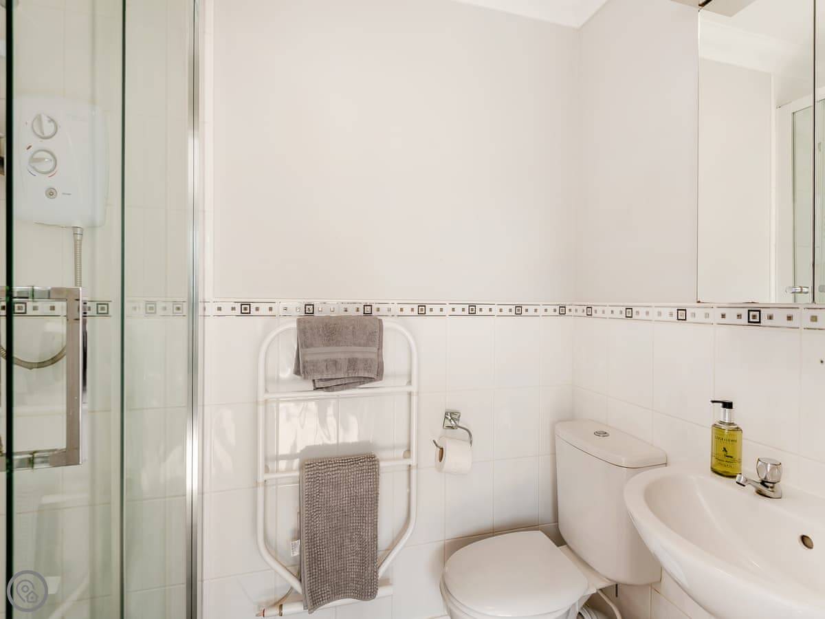 The lodge sleeps six in three bedrooms. There are two bathrooms, which is handy. One is an ensuite off the main bedroom with a shower, and there's a family bathroom with a shower over the bath. It's got a 4 Star rating. It's modern and clean, everything works as it should.