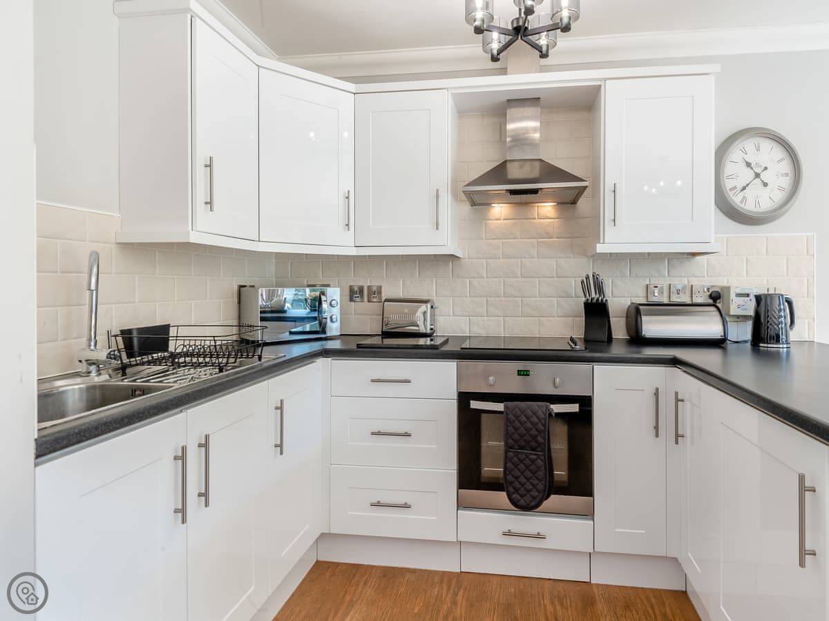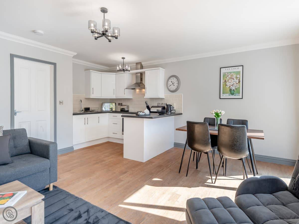 It sleeps two. There's one bedroom with twin beds and an ensuite shower room. The living area is open plan. There's a sofa bed in there, so you could have an extra guest or two if needed, but it's really best for a couple. The kitchen is compact, but it has what you need.