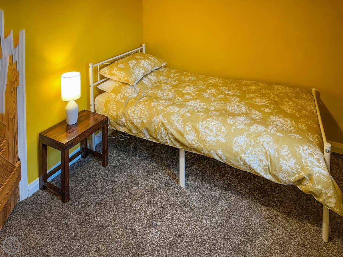 The house sleeps four. There are three bedrooms upstairs and two bathrooms, one upstairs and one down. It's a 4 Star place, so it's comfortable. The stairs are a bit narrow and winding, as you'd expect.