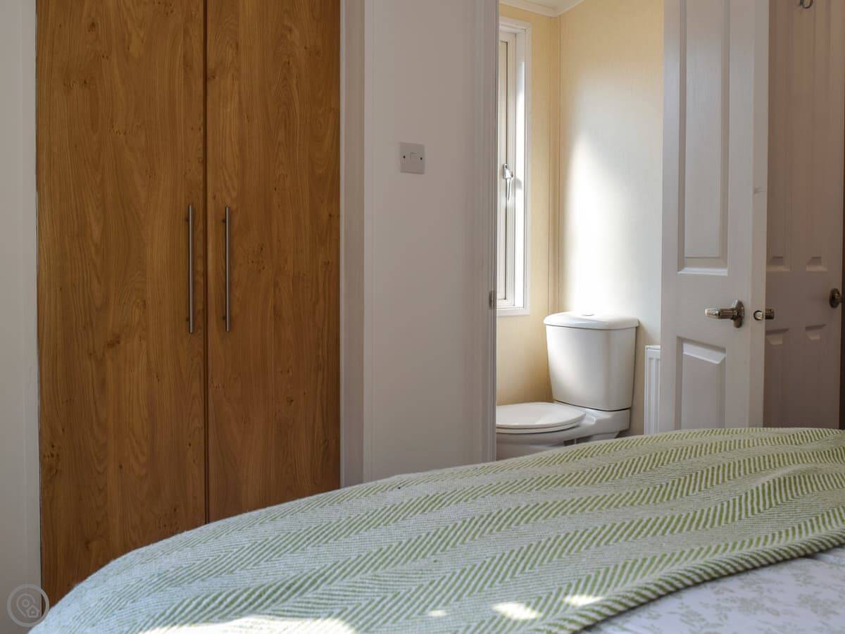 It's got a 4 Star rating. It's clean and comfortable, but it's not huge. One bedroom has a standard double bed with the ensuite toilet. The other bedroom has a small double bed, which is 4 foot wide. It's cosy. The main bathroom has a shower.