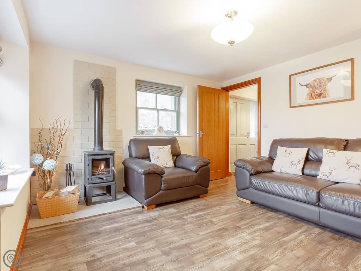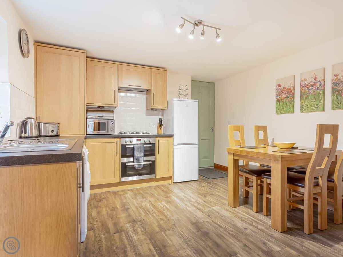 Inside, there's a wood burner in the living room. The kitchen has a dishwasher and washing machine. There's a downstairs loo. Bedding and towels are included. You can bring up to two dogs. There's parking for one car on the drive.