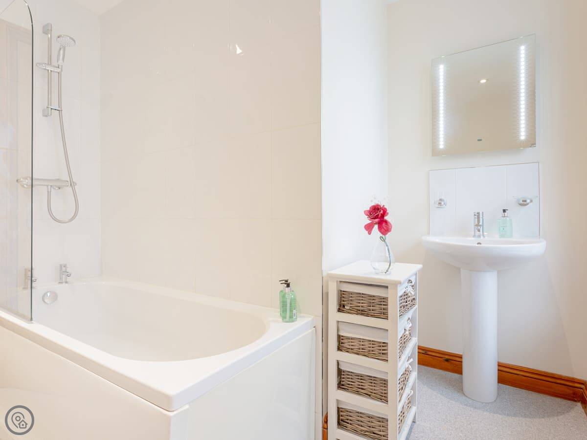 It sleeps four in two bedrooms: one double, and one with twin beds. There's one bathroom with a shower over the bath. It's got a 4 Star rating. It's comfortable and well looked after. The stairs are typical for a cottage, so they're a bit steeper than in a modern house.