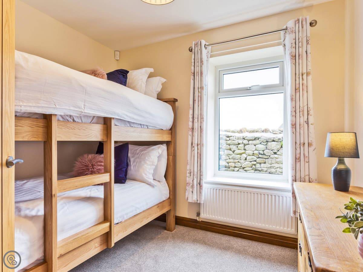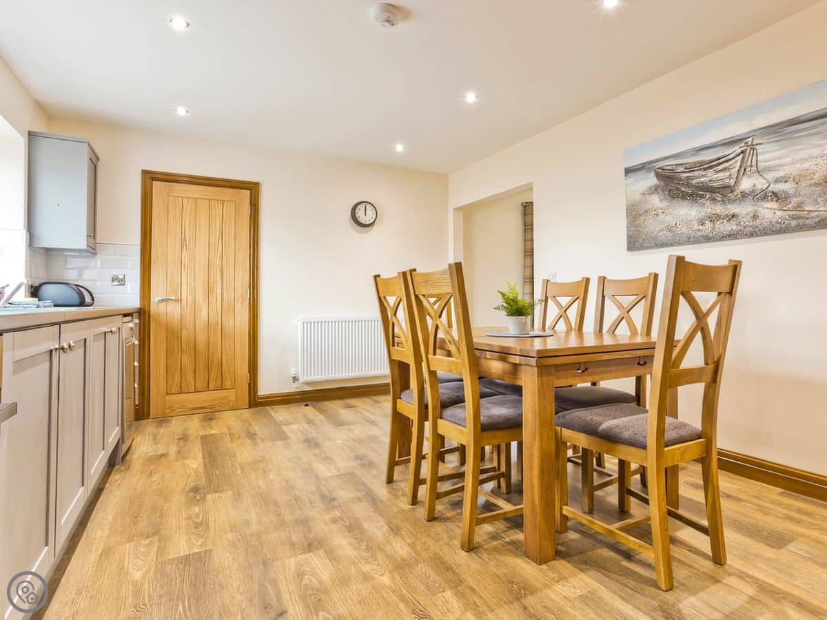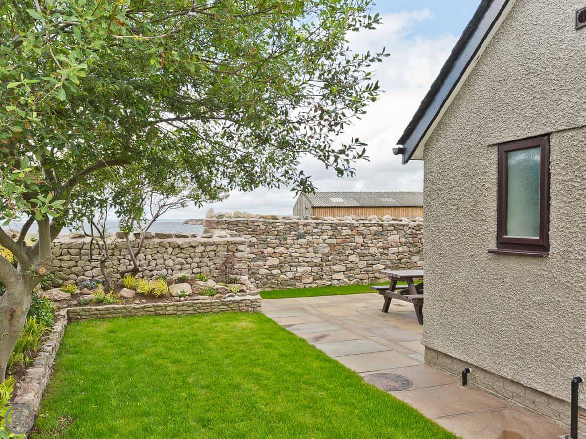 There's a living room with a wood burner, a separate snug with a TV, and a kitchen diner. Outside, there's a patio with a picnic bench. The view from there is out over the bay. You get private parking.