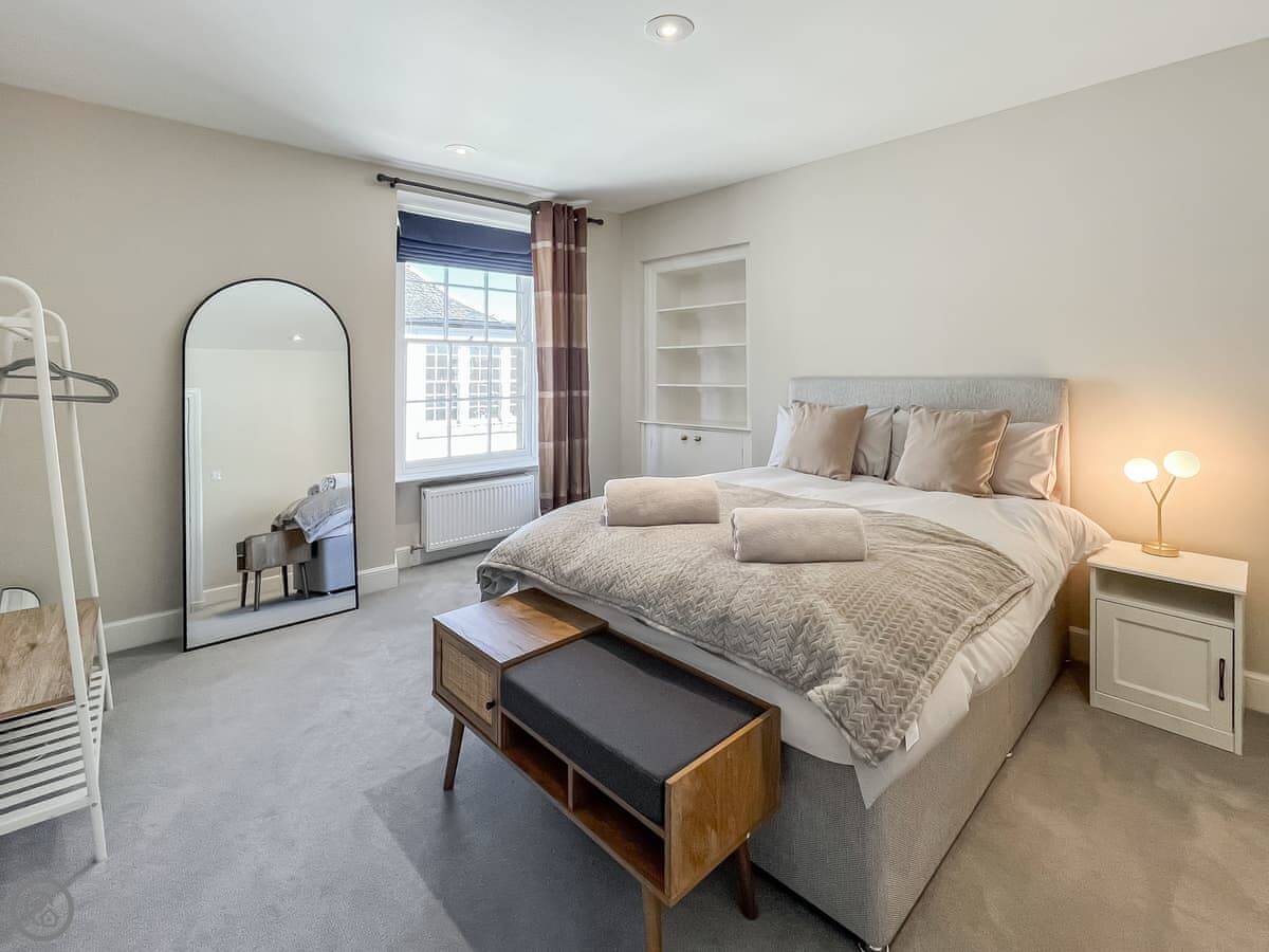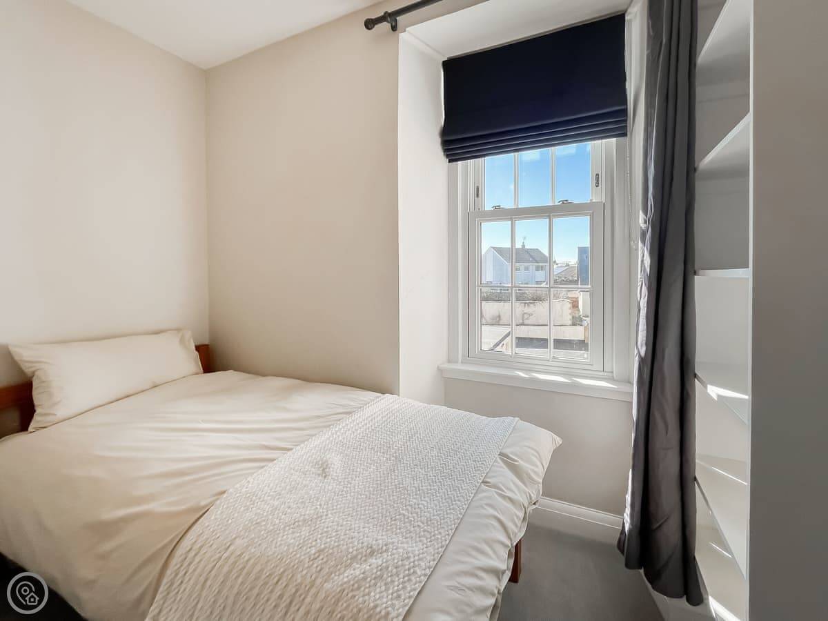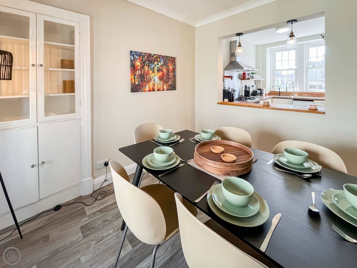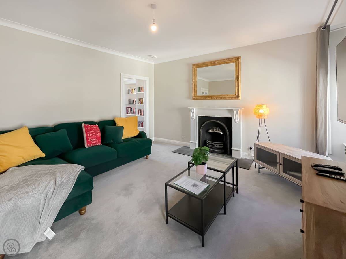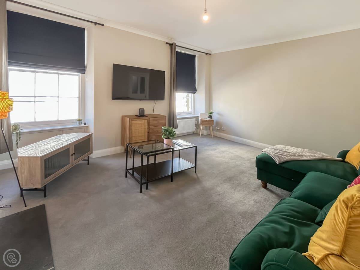 The flat has a sitting room at the front. There's a kitchen with a dining area, and a small snug room off it which is handy if someone wants a bit of quiet. The bedrooms are laid out well: one kingsize, one double, and one single.