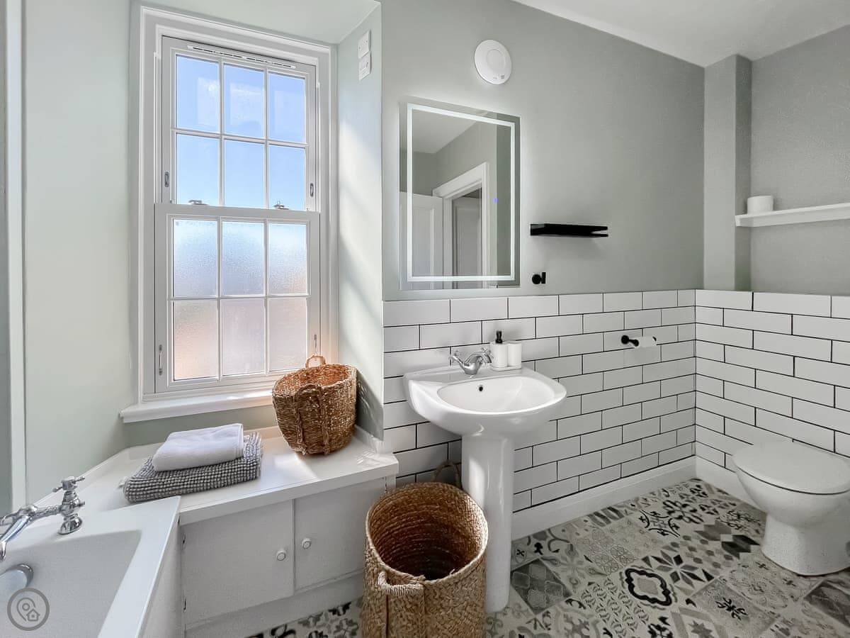 For facilities, you've got a washing machine, dishwasher, Wi-Fi, and TV. Bedding and towels are included. There's storage for bikes. There's on-street parking outside. No pets, sorry.