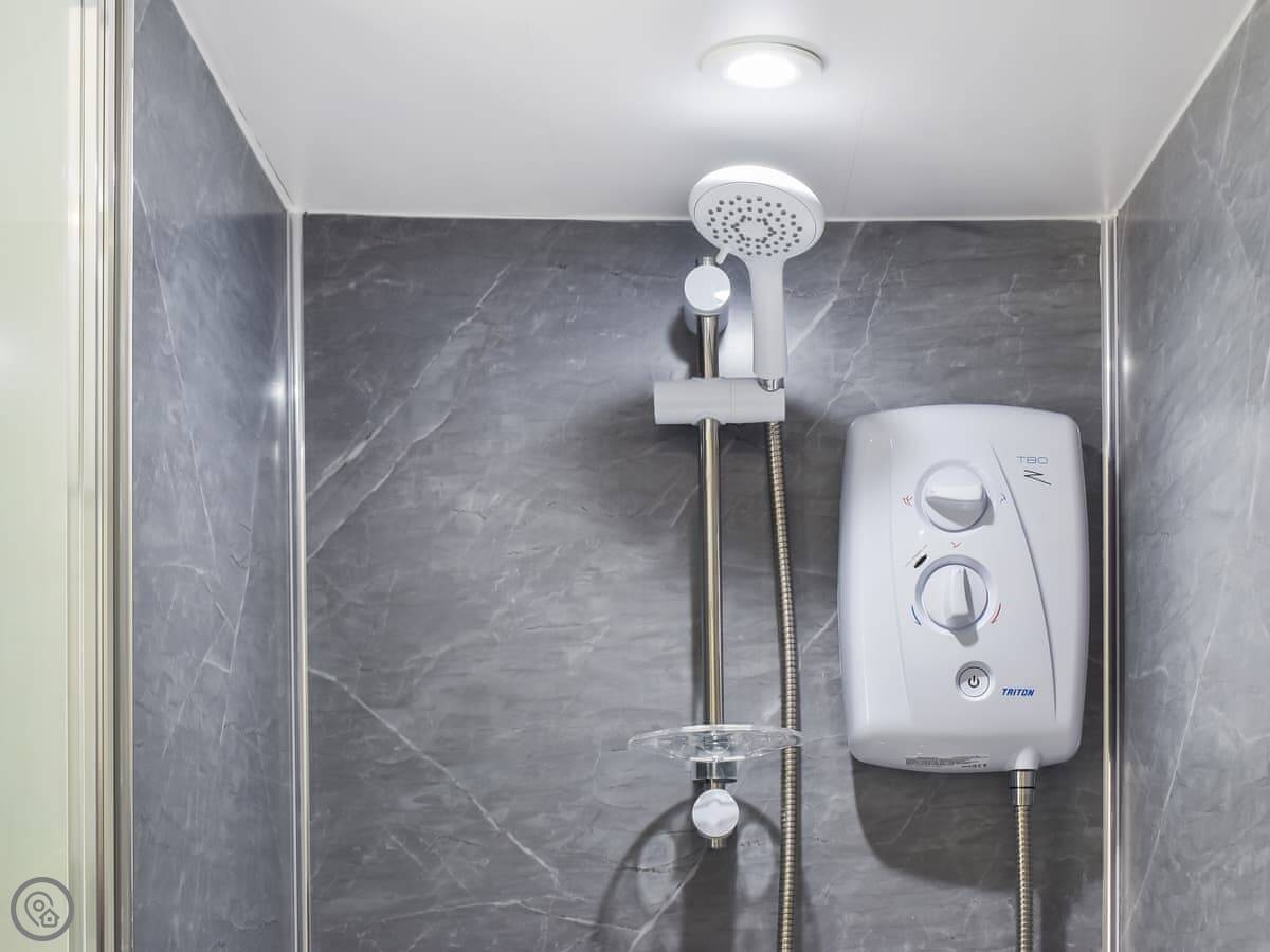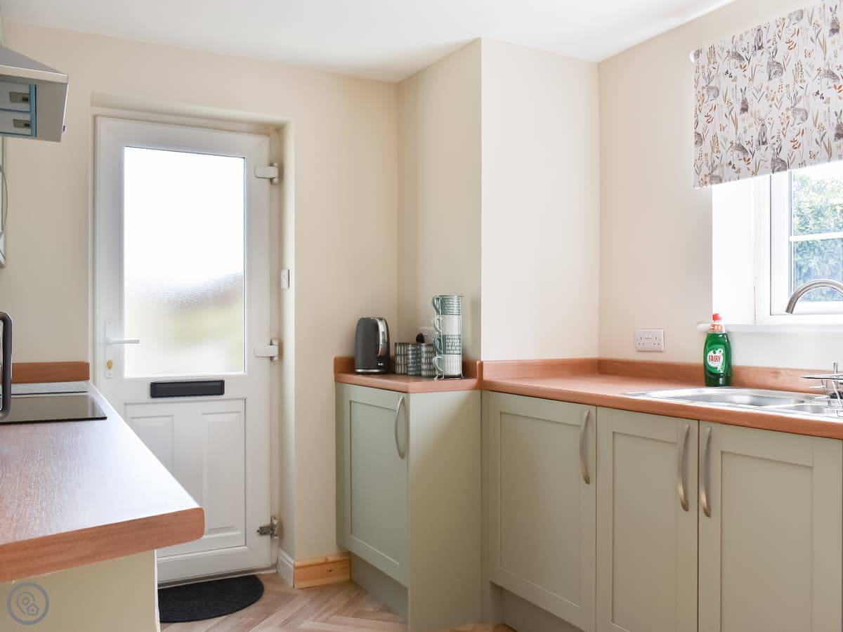Inside, it's got what you'd need. Washing machine, TV, WiFi. Bedding and towels are included. There's a cot if you need it. You can bring up to two dogs.
