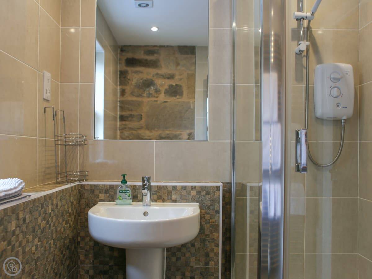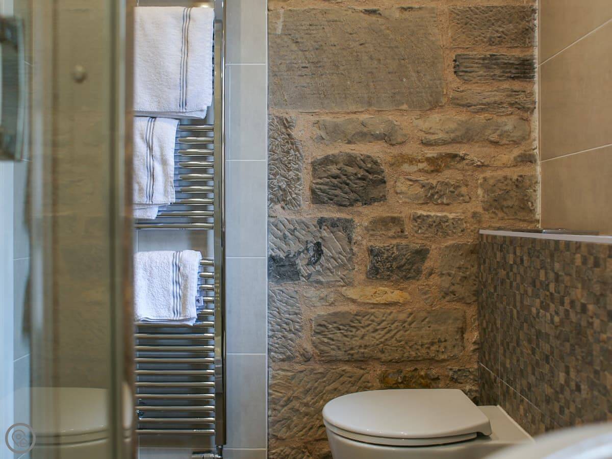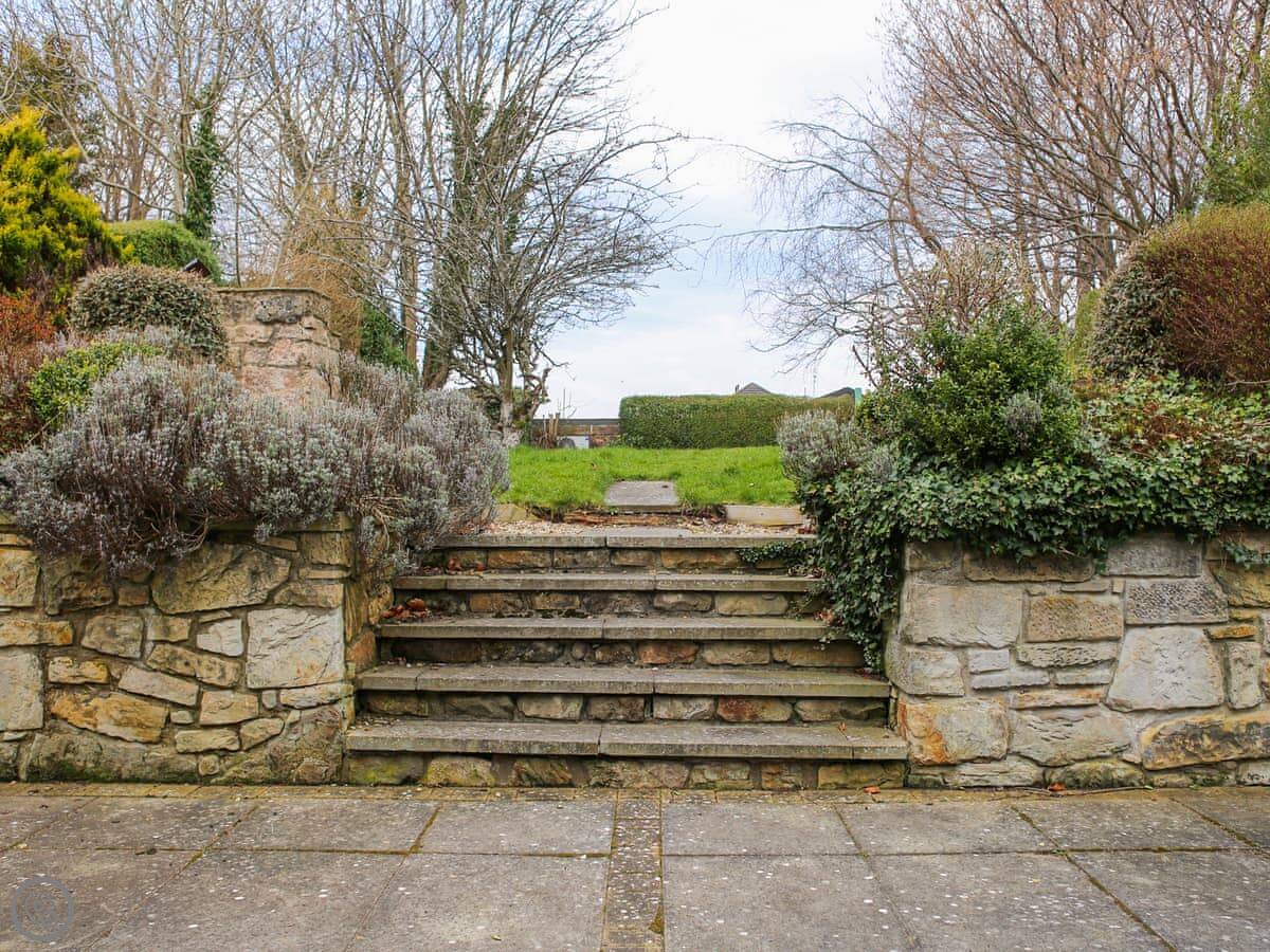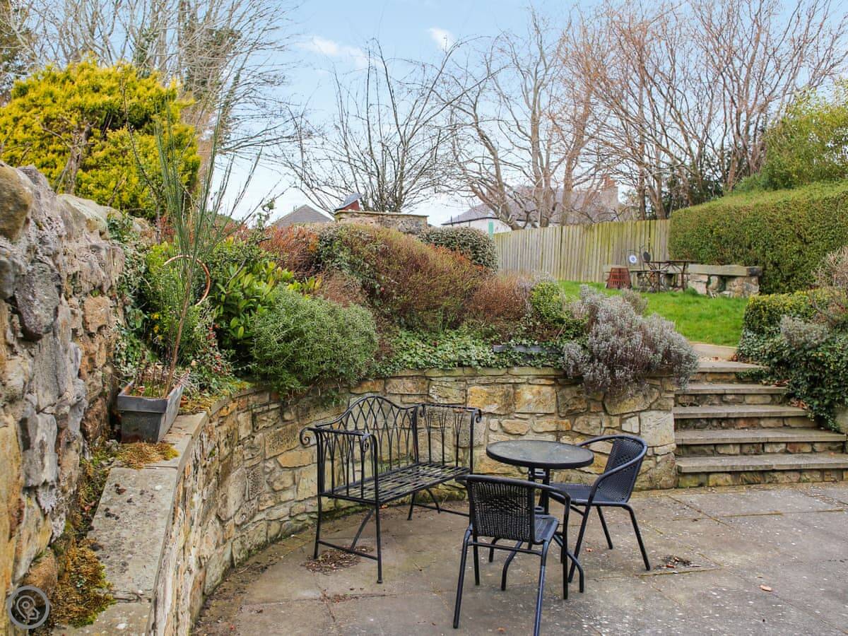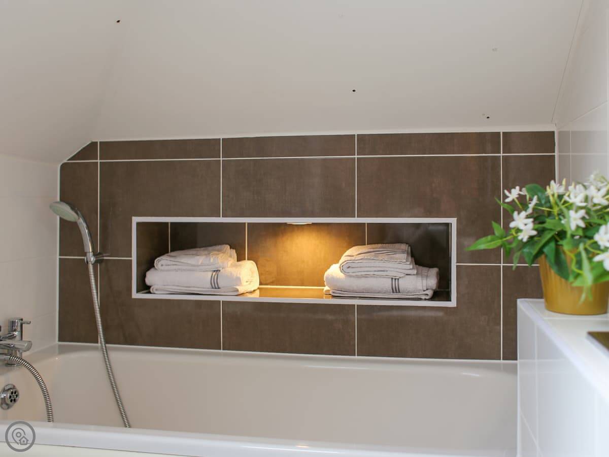 There are two bedrooms and two bathrooms. One bedroom is on the ground floor with patio doors to the garden. The other is upstairs and has a bath en suite. It's got a 4 Star rating, so it's well looked after and comfortable. It's not huge, but it's fine for four people. The stairs are a typical cottage staircase, so they turn a bit and are a bit steeper than a normal house.