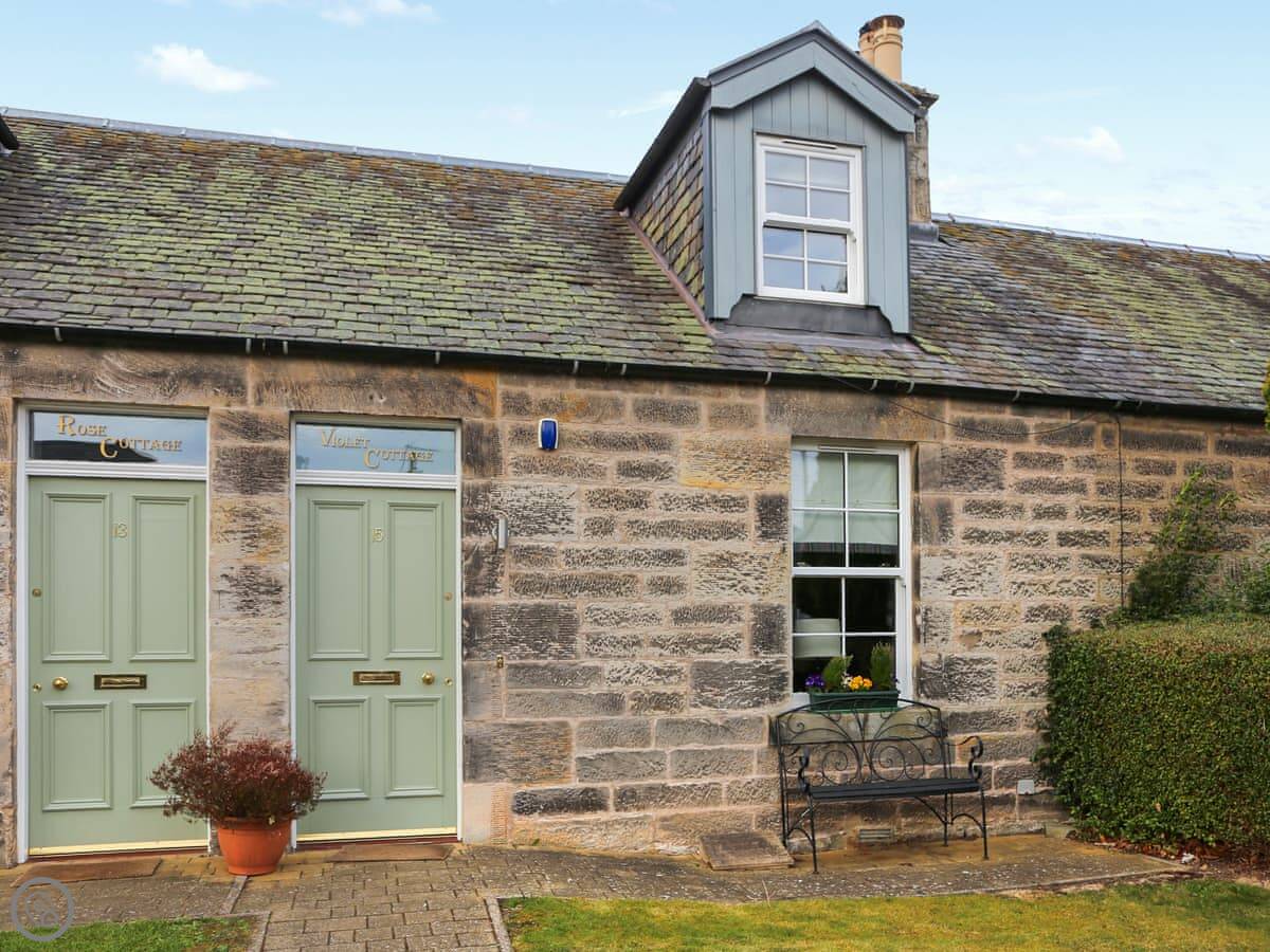 This is Roslin Chapel Lodge in Midlothian. It's one of a pair of stone-built cottages, but you have your own bit of garden. It sleeps four, with two bedrooms and two bathrooms. It's got a 4 Star rating, which is good. It's clean and comfortable.