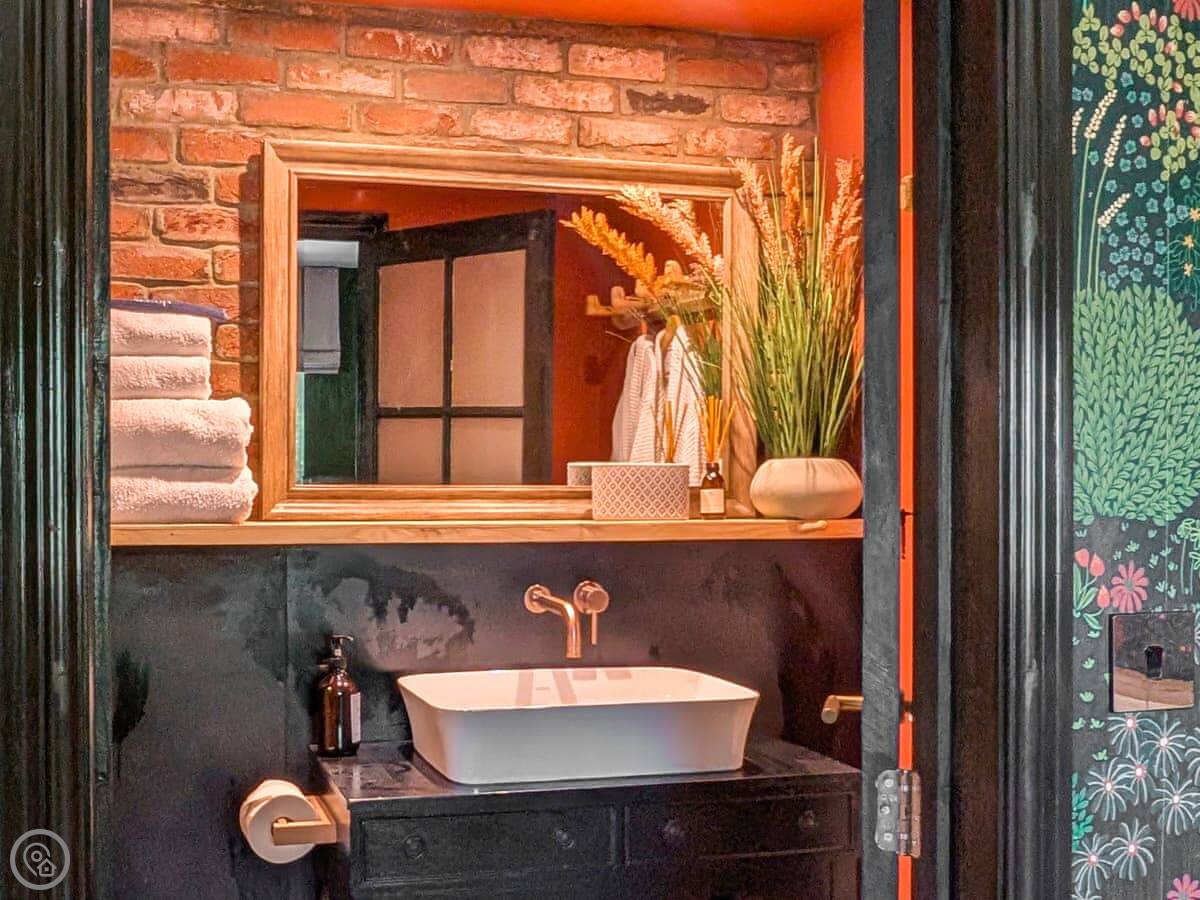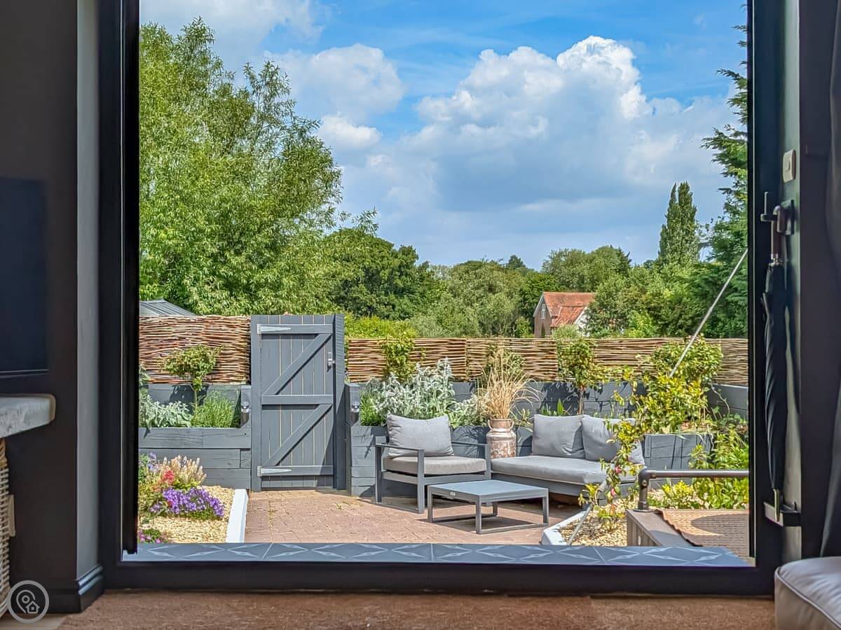 Outside there's a private courtyard garden. It looks out over fields. You get one dedicated parking space.